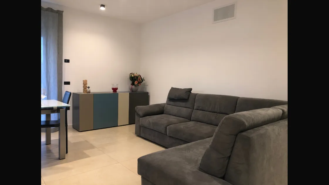 The entrance and the living area have been furnished with matt lacquered wooden furniture in different colours. The entrance furniture is all wall-hung and with a smooth door without a handle, while in front of the sofa we have created a sideboard that can contain various objects.