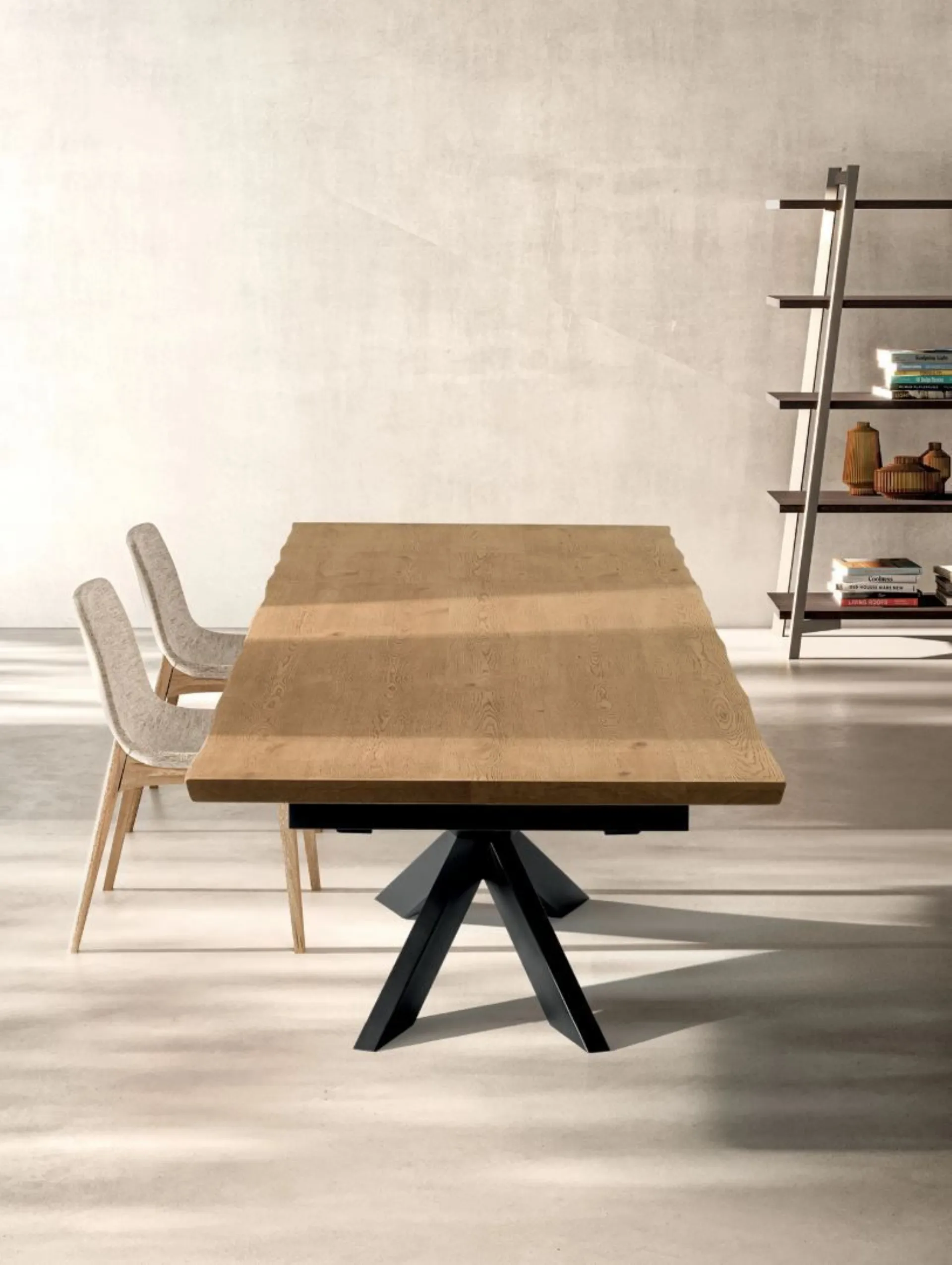 PRODUCT: Fixed Table COMPANY: Devina Nais MODEL: Nexus FINISH: Extendable table with base in Painted Iron Black. Top and extensions in river veneer 4 cm thick, natural Holland finish. Irregular bark effect edge. DIMENSIONS: cm 200/250/300 x 100 LIST PRICE: € 4,989.00 DISCOUNT: 35% DISCOUNTED PRICE: € 3,240.00
