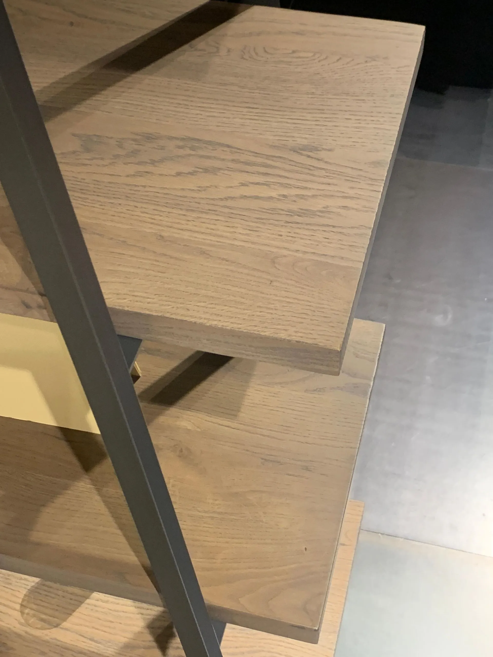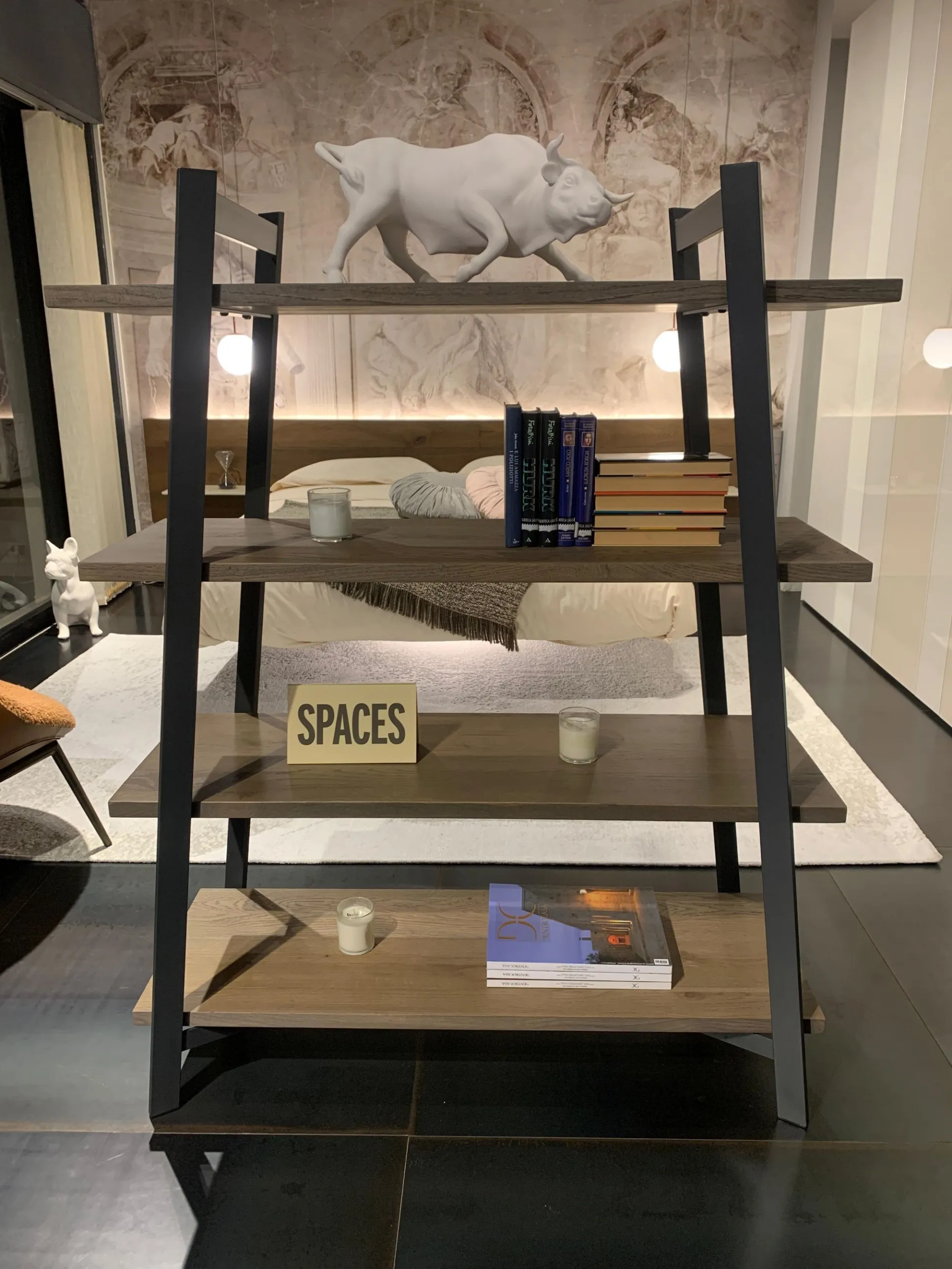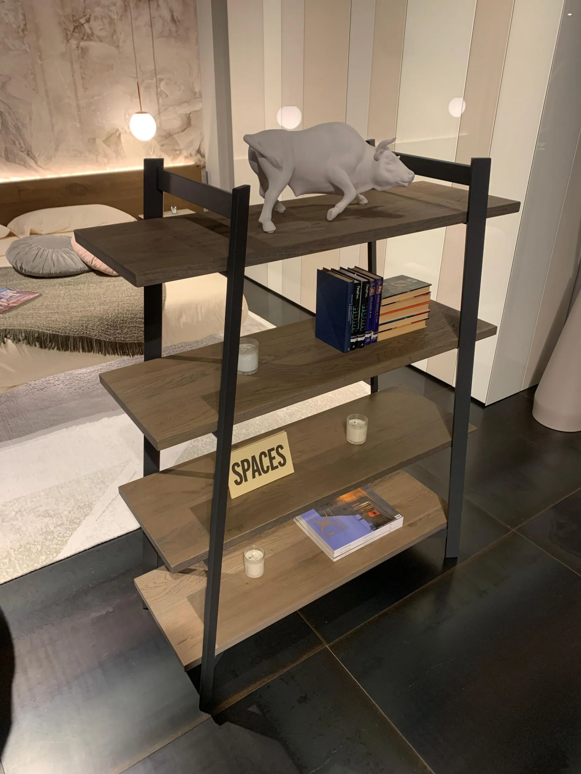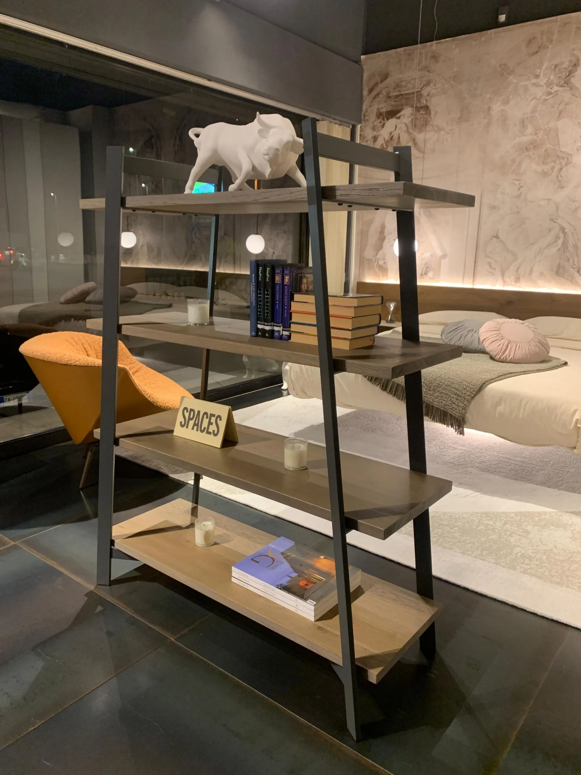FINISH: Bookshelf with anthracite iron structure, solid wood shelves with tobacco finish