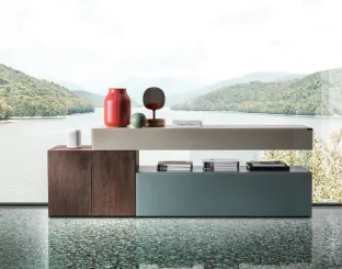 FINISH: Lacquered structure and Gentle Oak, Fronts in Glossy Glass and Wildwood, Inserts in transparent tempered glass.