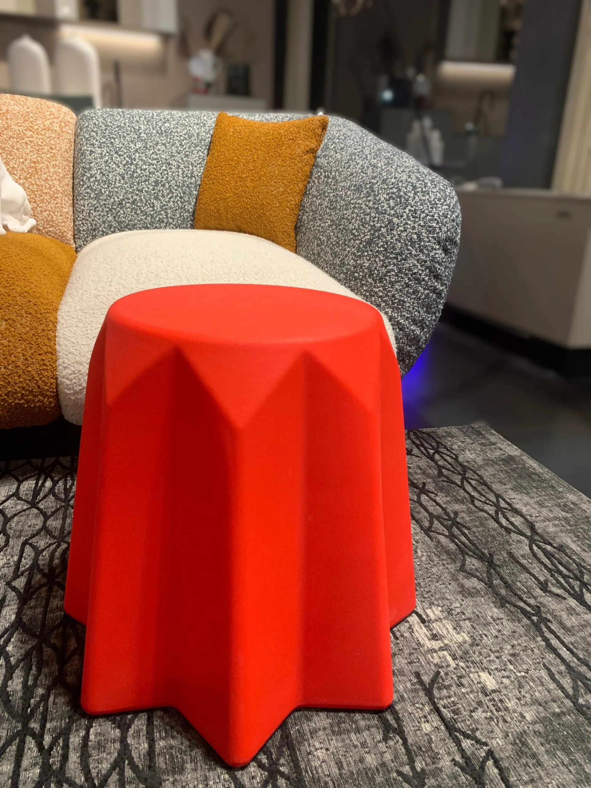 PRODUCT: Table/Stool COMPANY: Slide MODEL: Pandoro FINISH: Stool/Table in Flame Red polyethylene DIMENSIONS: 47 x 47 h 42 cm LIST PRICE: €134.00 DISCOUNT: 30% DISCOUNTED PRICE: €90.00