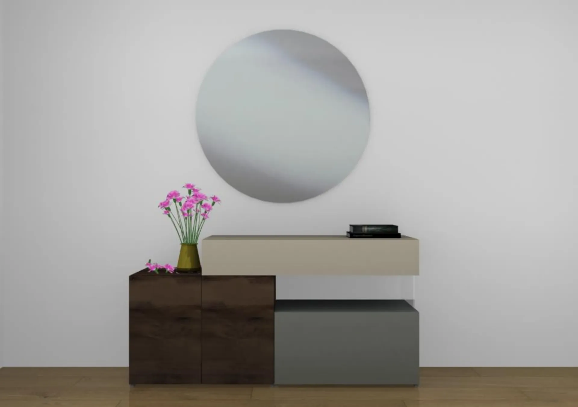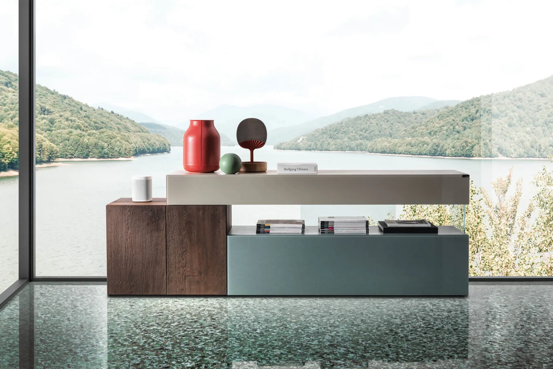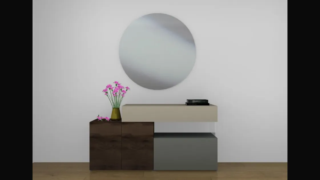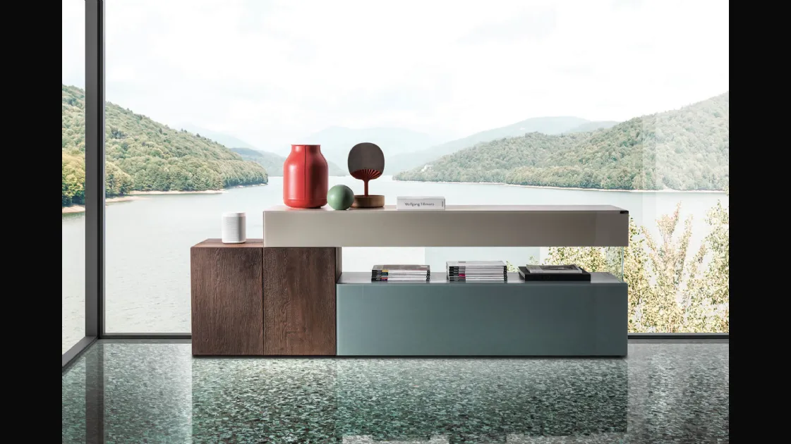 FINISH: Lacquered structure and Gentle Oak, Glossy glass fronts and Wildwood, Inserts in transparent tempered glass + GLOSSY GLASS BIFACIALS and Gentle Oak