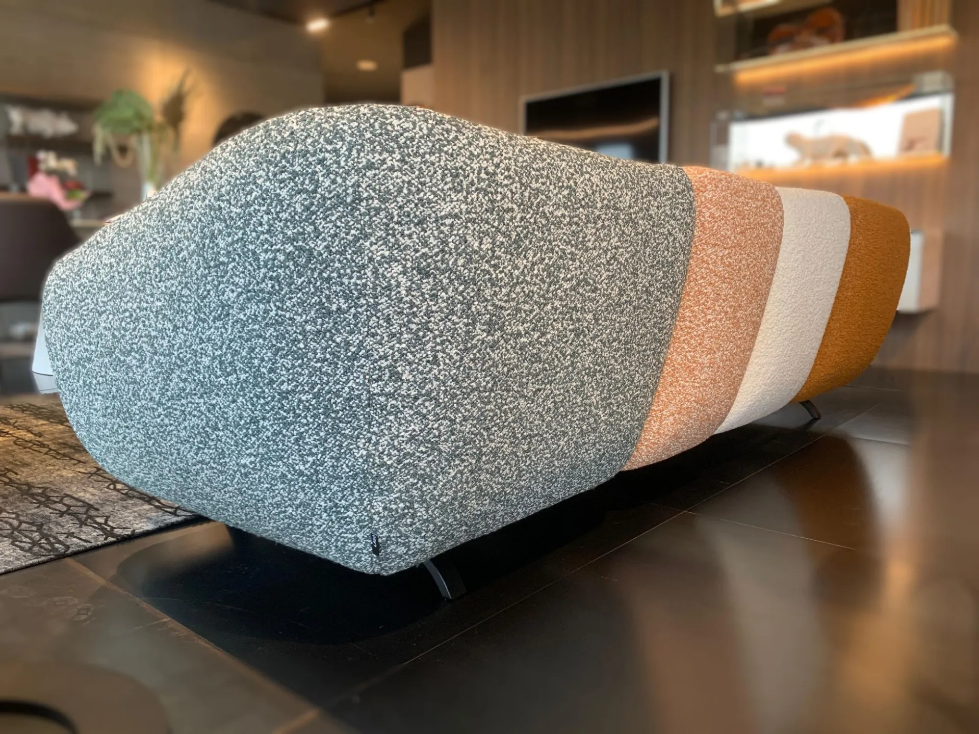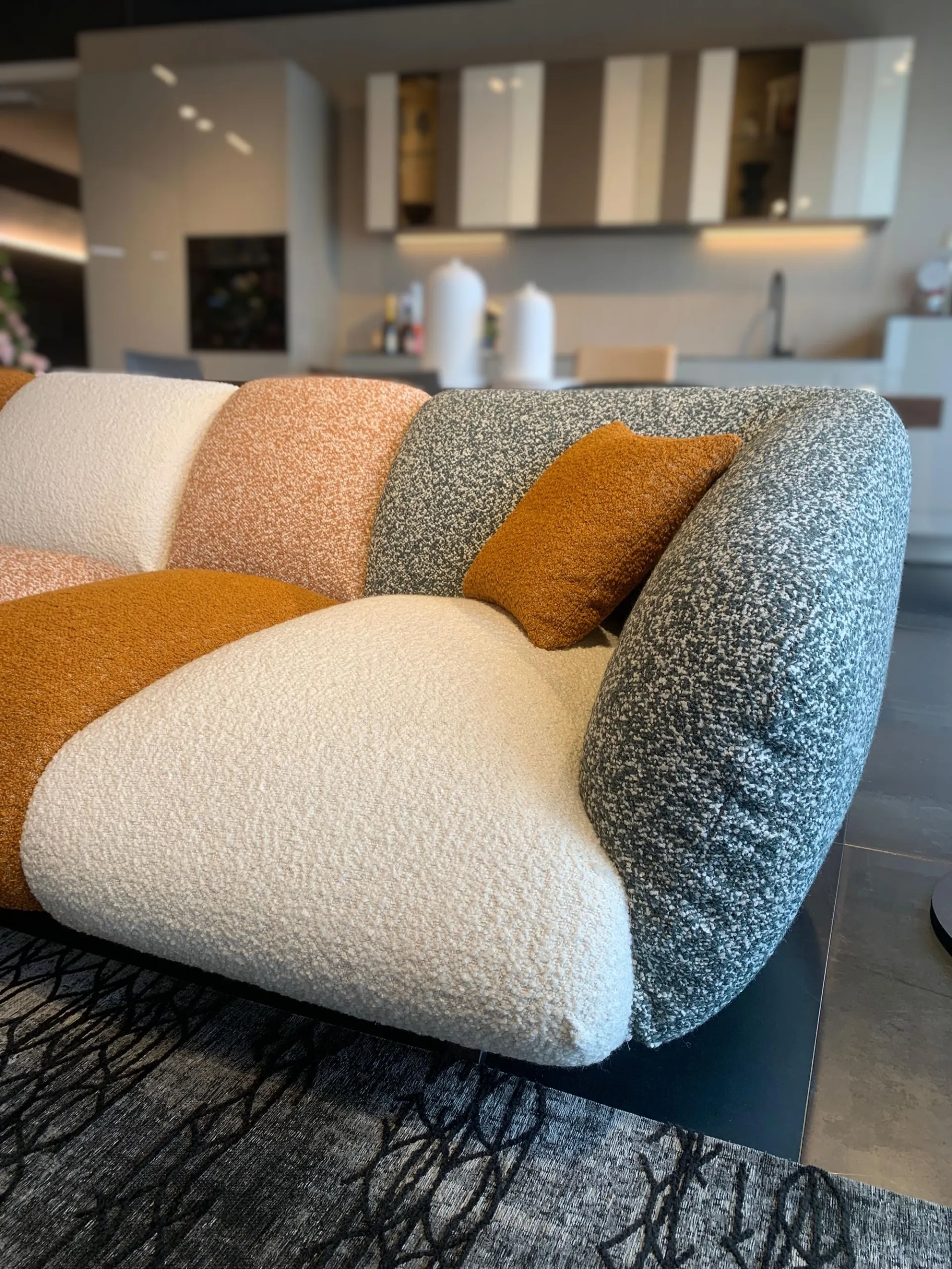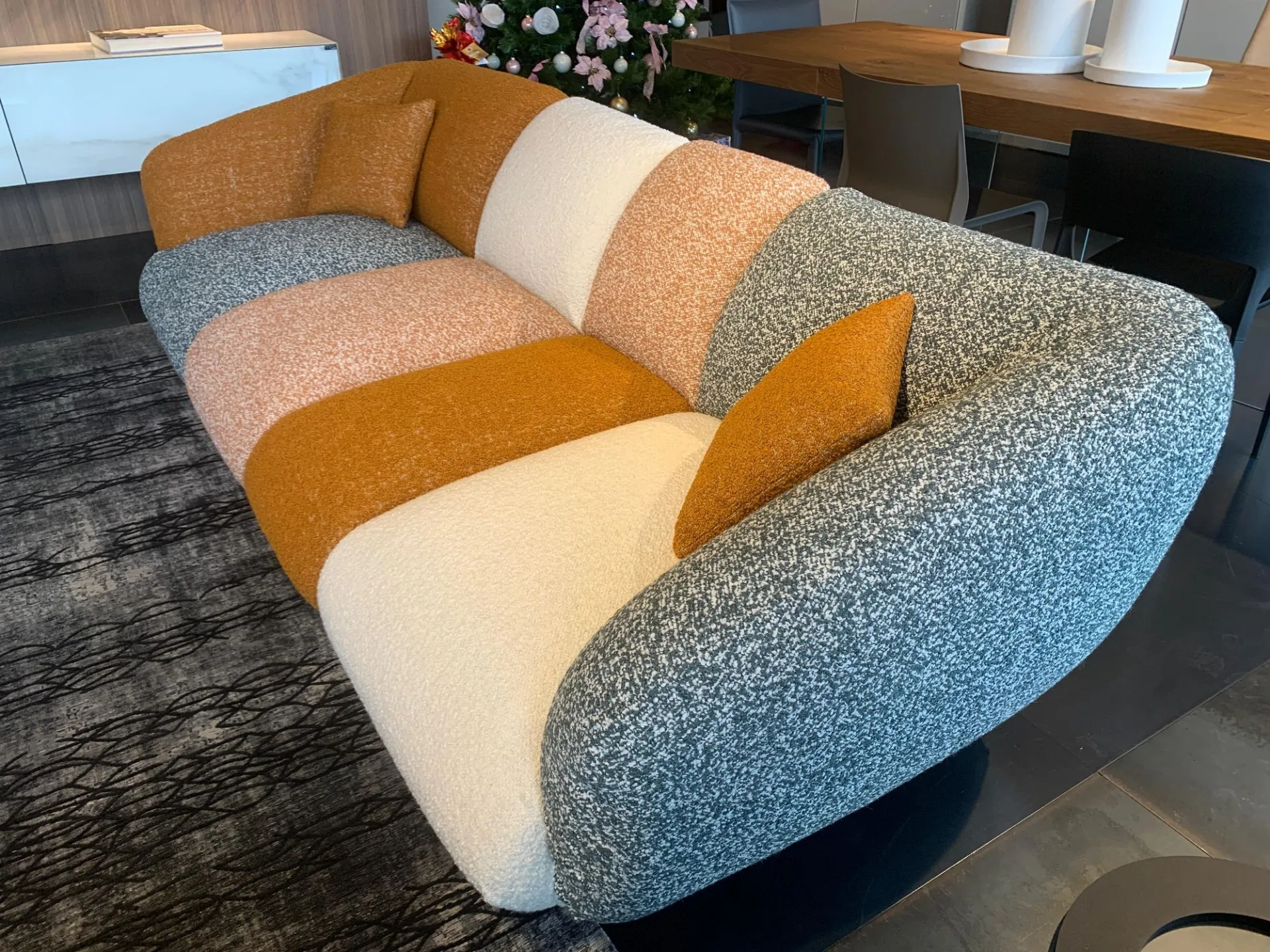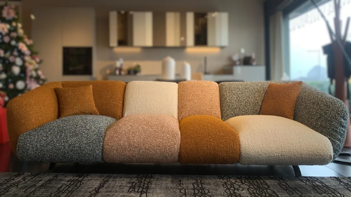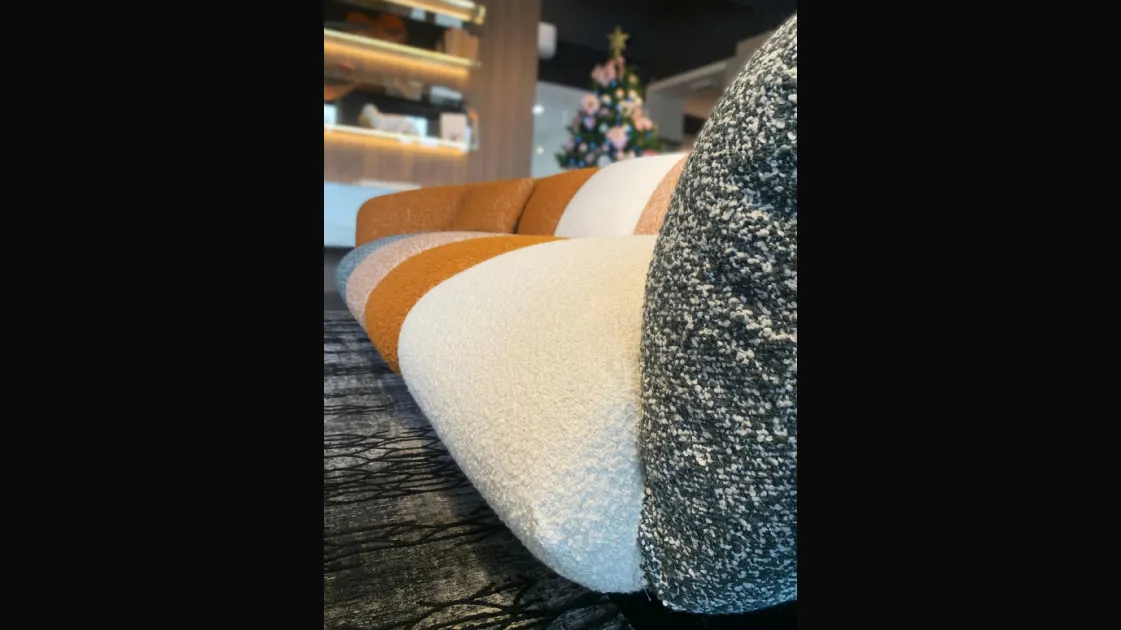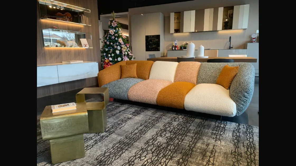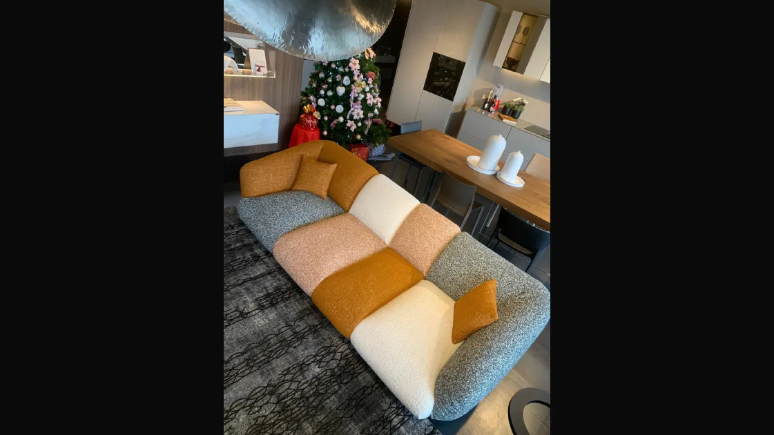 PRODUCT: Linear fixed sofa COMPANY: Lago MODEL: NOW - Not Only White FINISH: Wooden frame, Upholstery in polyurethane with different densities, Memory Foam and Polyester Fiber. Metal legs. Covering in COLOR MOOD ENERGY fabric: Fabrics cat C: Vellus V09, Vellus V13, Tresigallo T08, Tresigallo T01 Includes Flying Cushions: 2 cushions in fiber 36.8x36.8 in fabric Tresigallo T08 The sofa is completely removable. DIMENSIONS: L 269W 109 H 75 approx. CM LIST PRICE: € 10,858.00 DISCOUNT: 36% DISCOUNTED PRICE: € 6,900.00