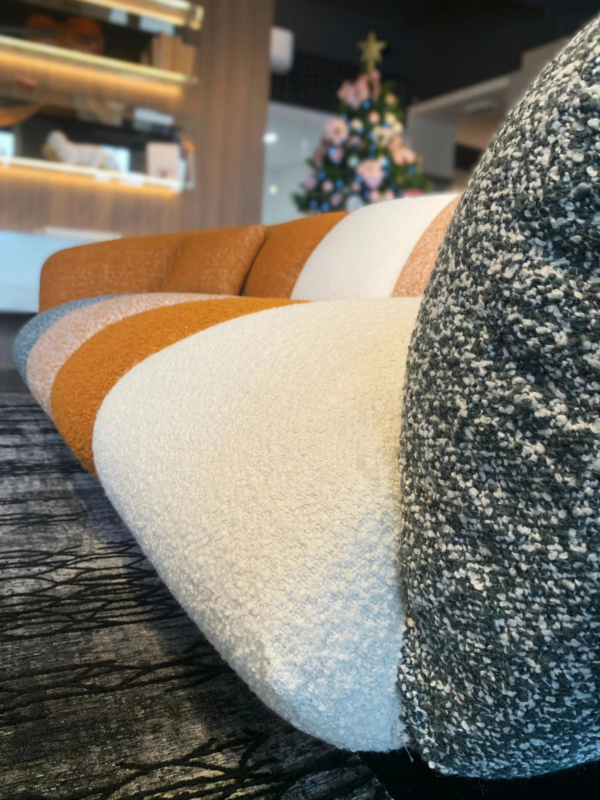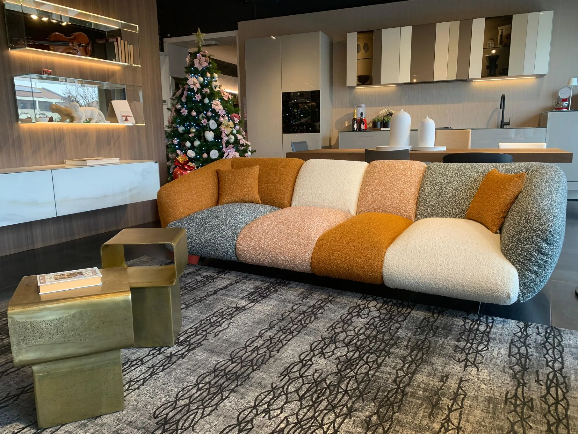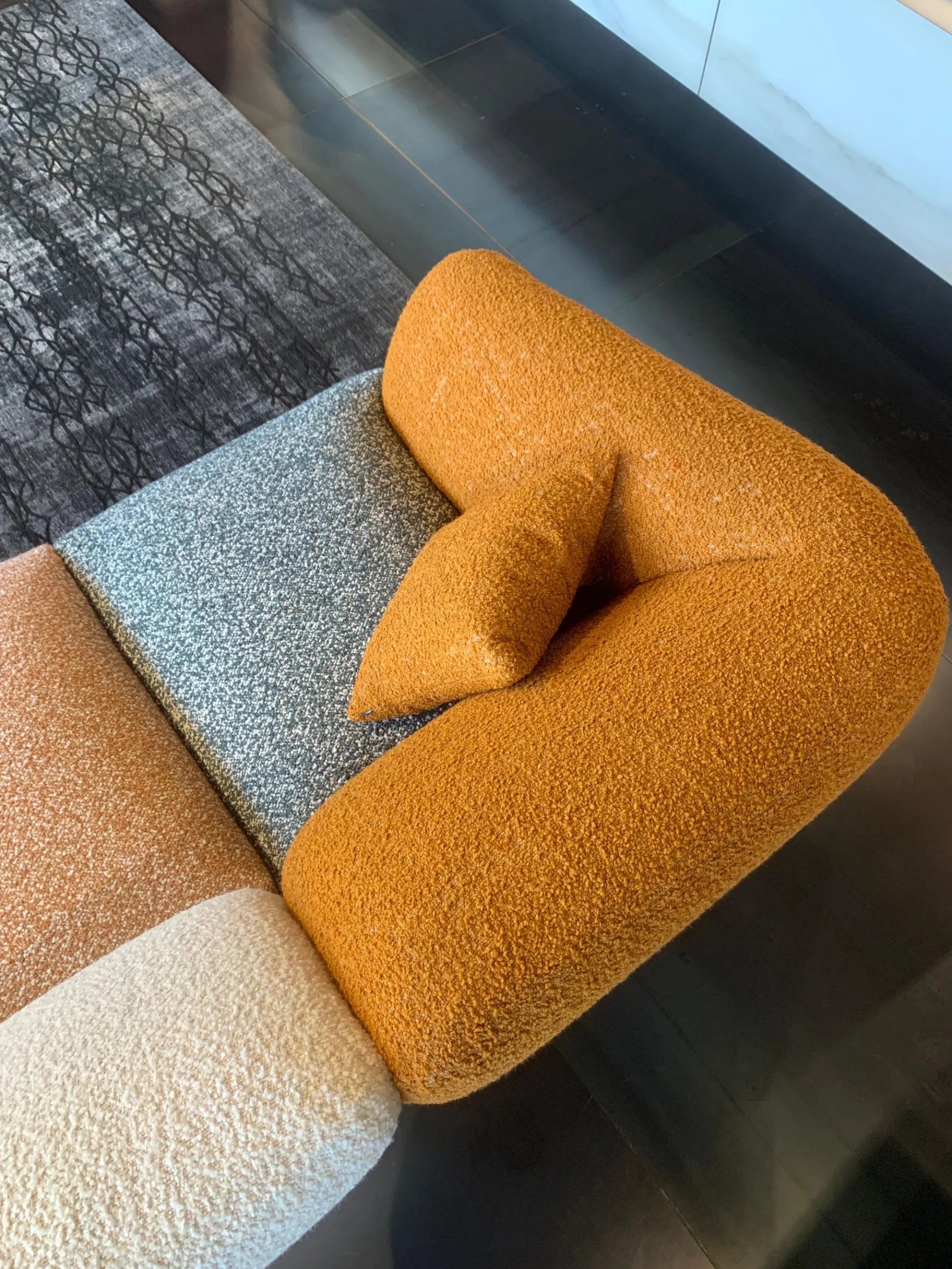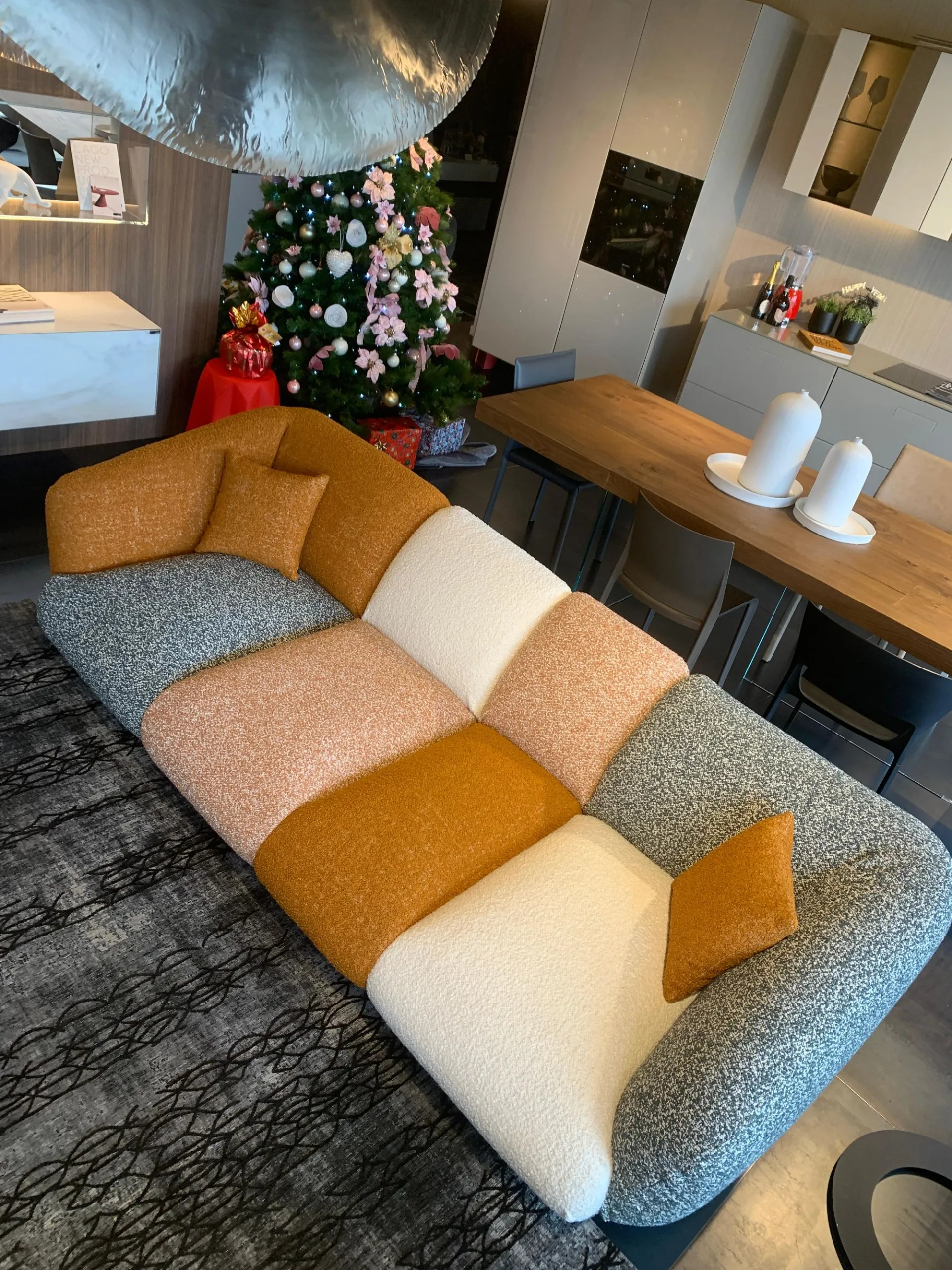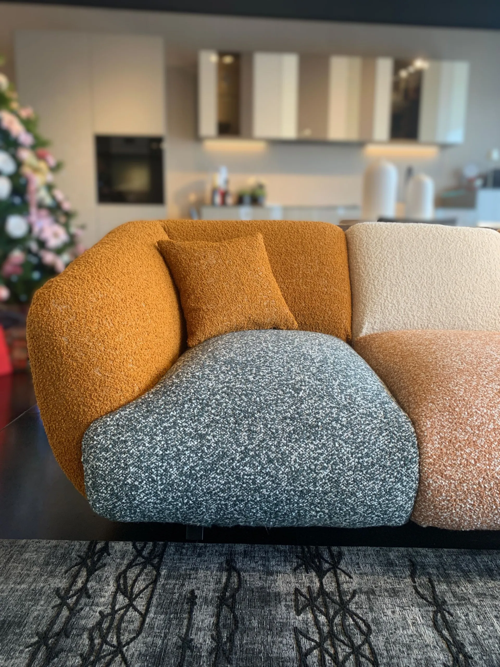PRODUCT: Linear fixed sofa COMPANY: Lago MODEL: NOW - Not Only White FINISH: Wooden frame, Upholstery in polyurethane with different densities, Memory Foam and Polyester Fiber. Metal legs. Covering in COLOR MOOD ENERGY fabric: Fabrics cat C: Vellus V09, Vellus V13, Tresigallo T08, Tresigallo T01 Includes Flying Cushions: 2 cushions in fiber 36.8x36.8 in fabric Tresigallo T08 The sofa is completely removable. DIMENSIONS: L 269W 109 H 75 approx. CM LIST PRICE: € 10,858.00 DISCOUNT: 36% DISCOUNTED PRICE: € 6,900.00