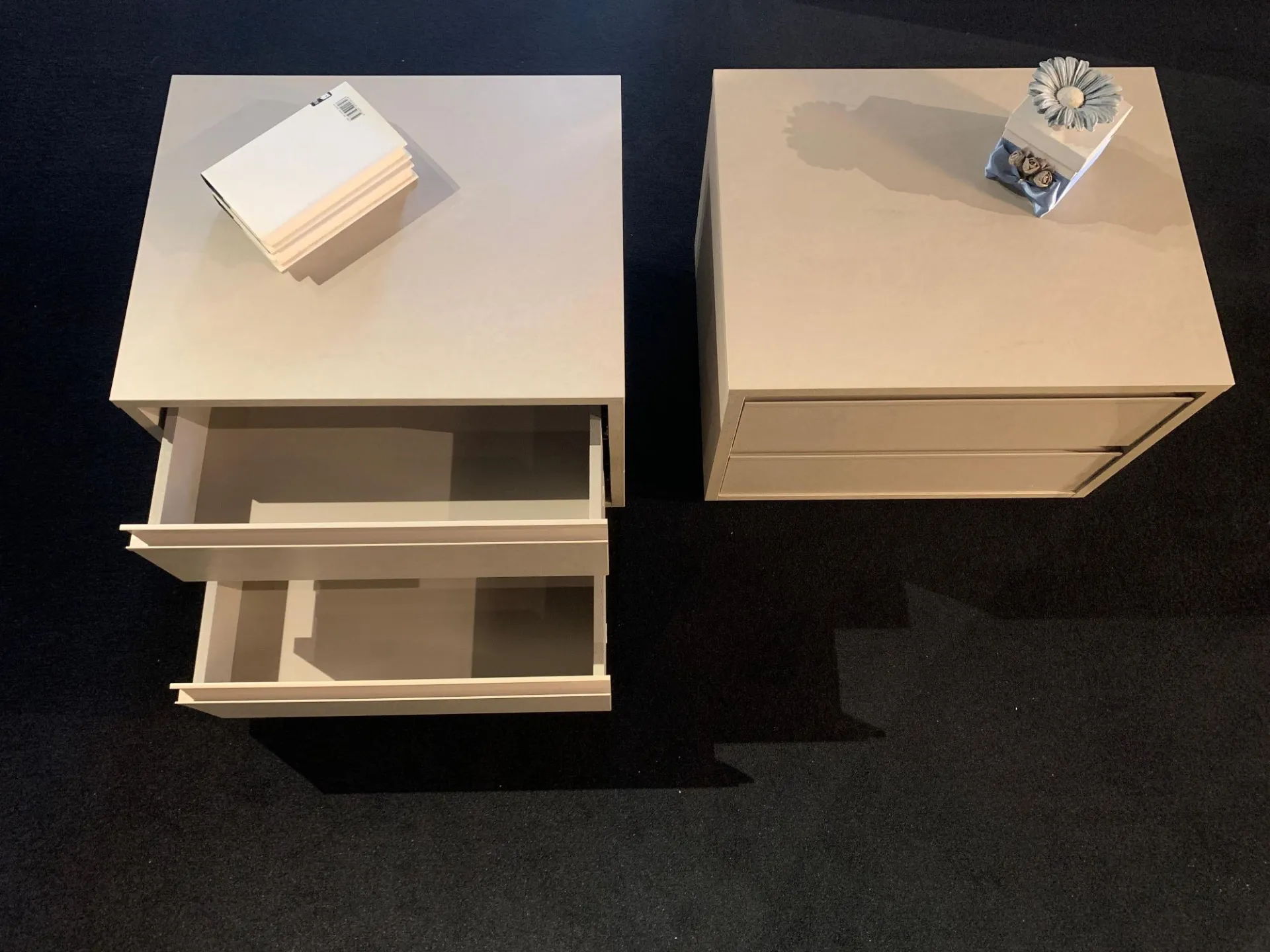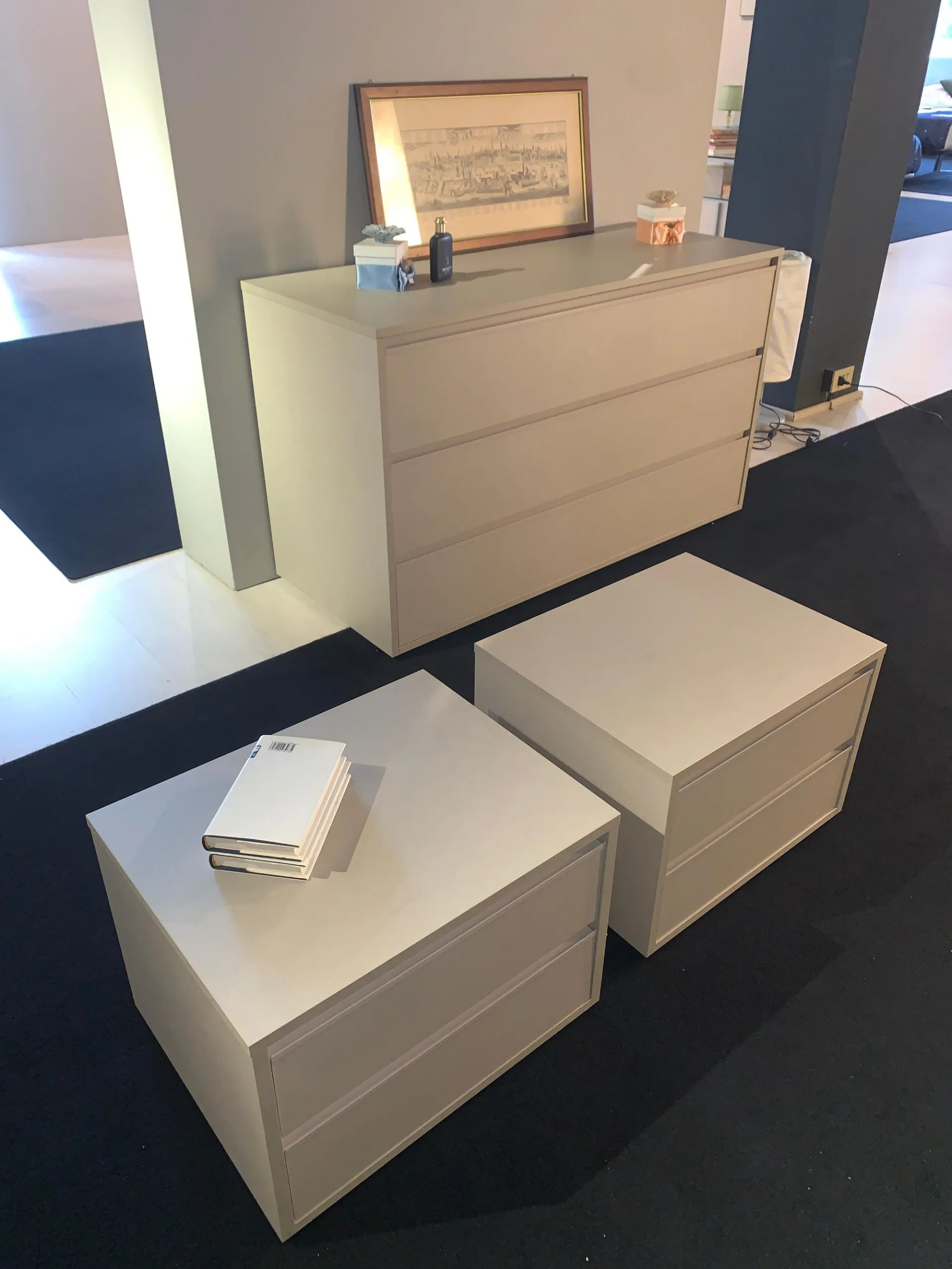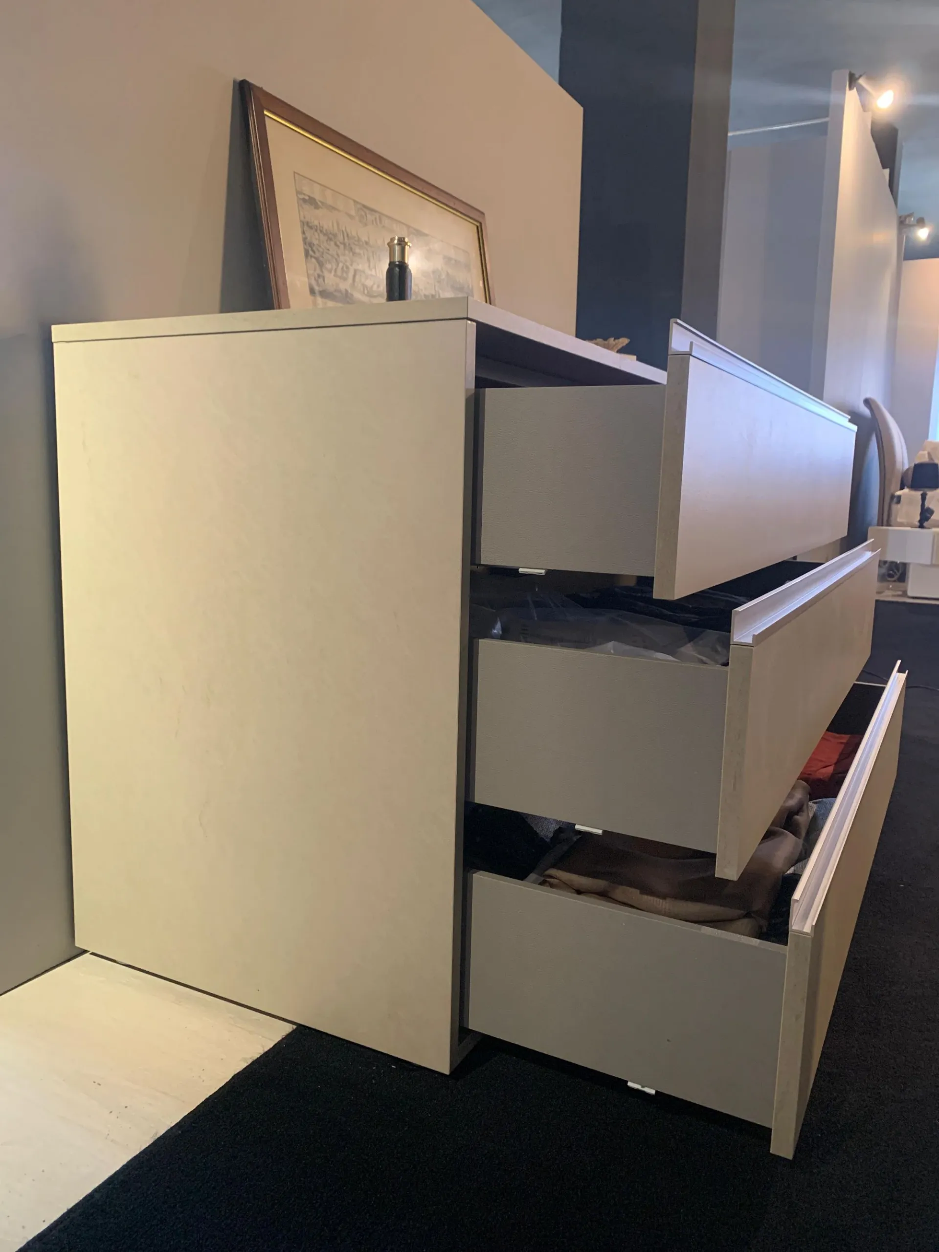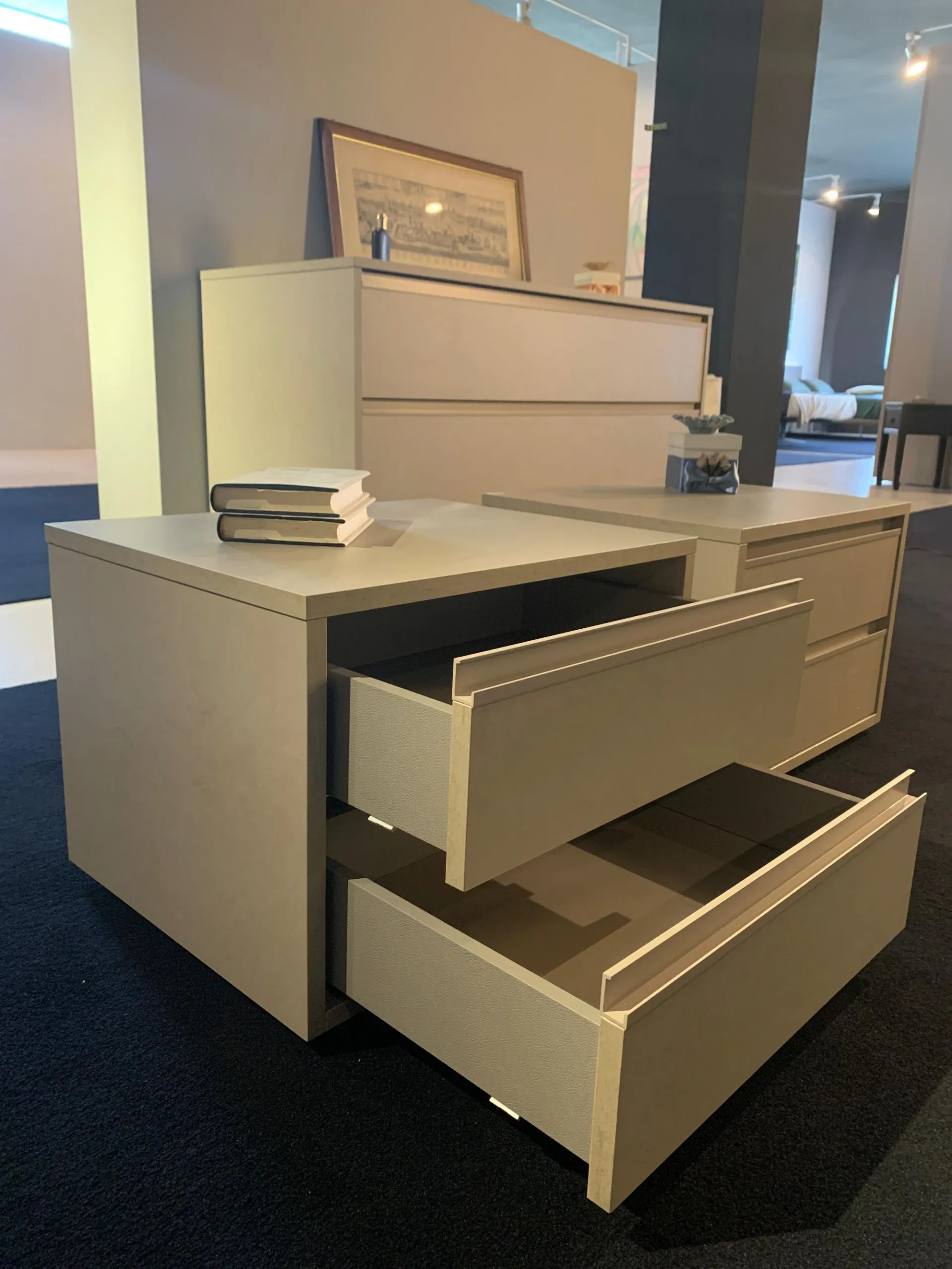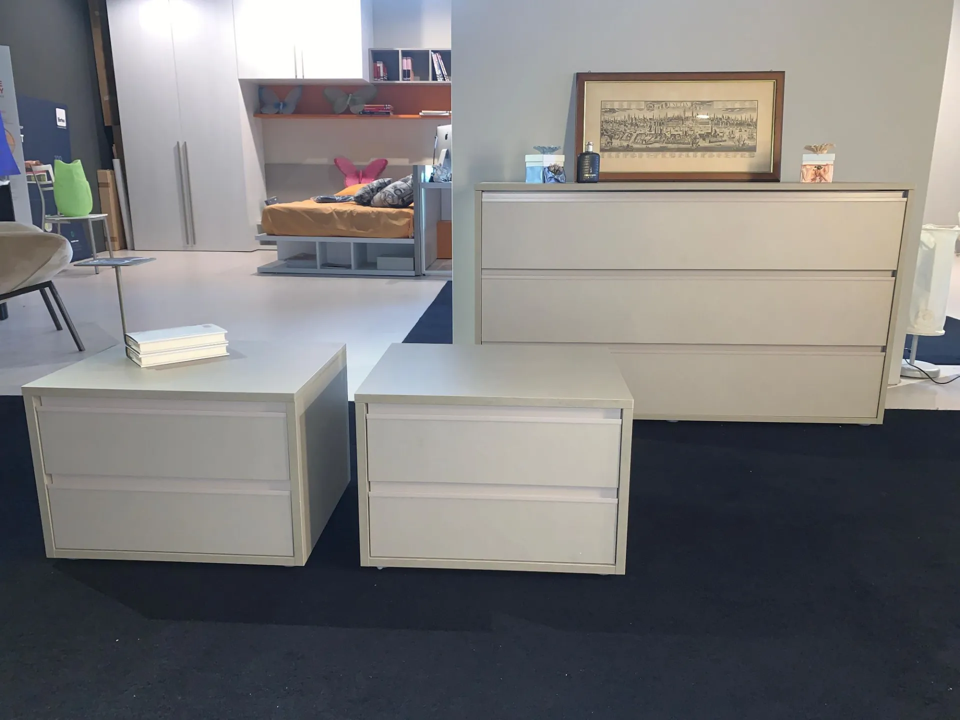 PRODUCT: Comò Group and 2 Nightstands COMPANY: Orme Light MODEL: Filo FINISH: Melaminic Dekor Avana. Drawers with hidden soft-closing guides DIMENSIONS: Comò 3 drawers L 128 W 52 H 76 CM Nightstand 2 drawers L 53 W 42 H 38 CM LIST PRICE: €1,105.00 DISCOUNT: 30% DISCOUNTED PRICE: €770.00