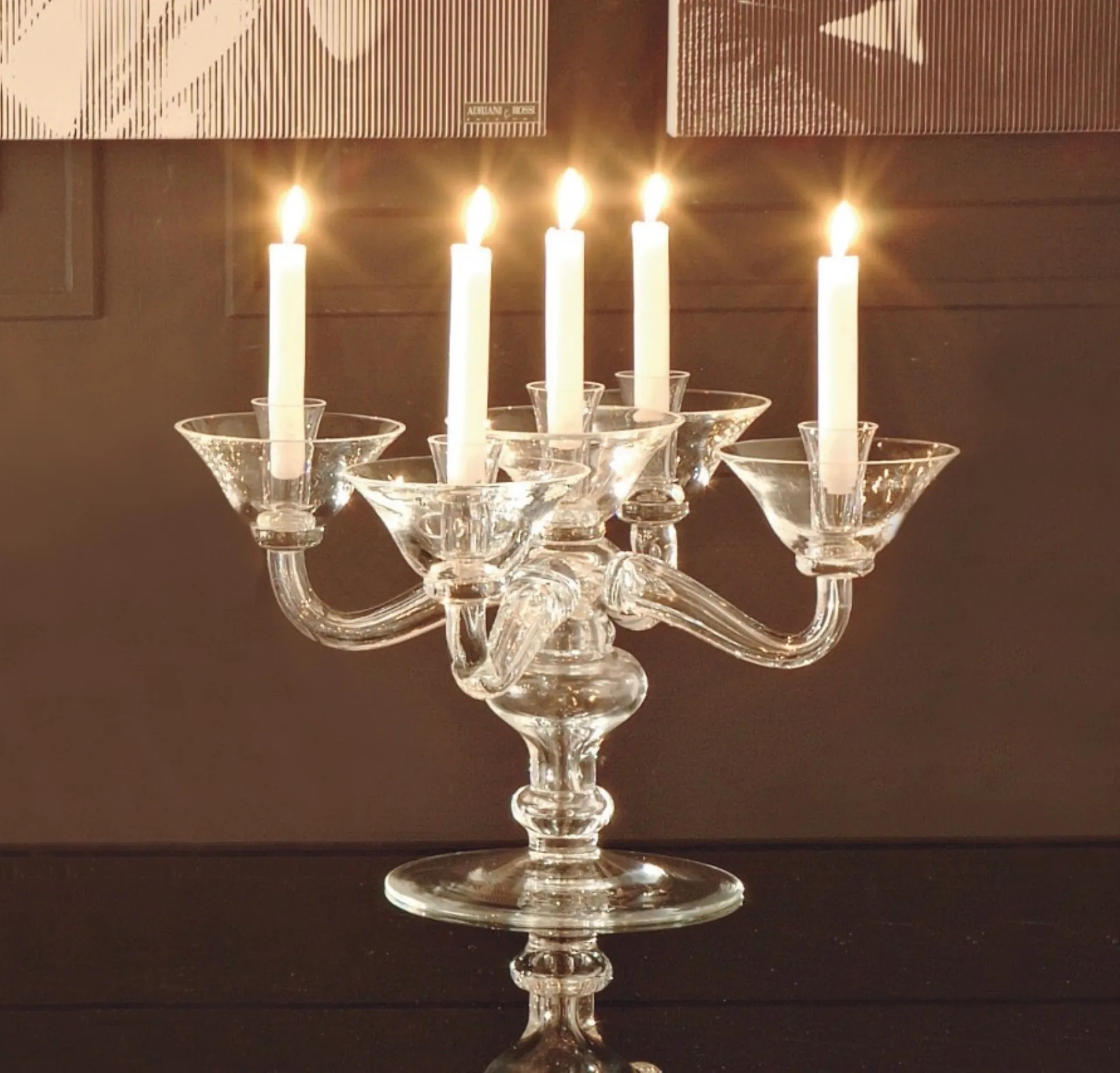 The high aesthetic value furnishing compositions of the Adriani e Rossi brand enhance the living space with their colors and taste, recreating particular decorative atmospheres. In our store, you can personally view the excellence of the classic glass candle and candle holder models by the brand, just like this solution in the photo. Decorative accessories, candles, and candle holders complete the home decor, filling the space in a useful way and making it very functional and beautiful to look at. Very versatile and multifunctional, classic glass accessories serve different functions: they enhance the practical qualities and aesthetic value of the room.