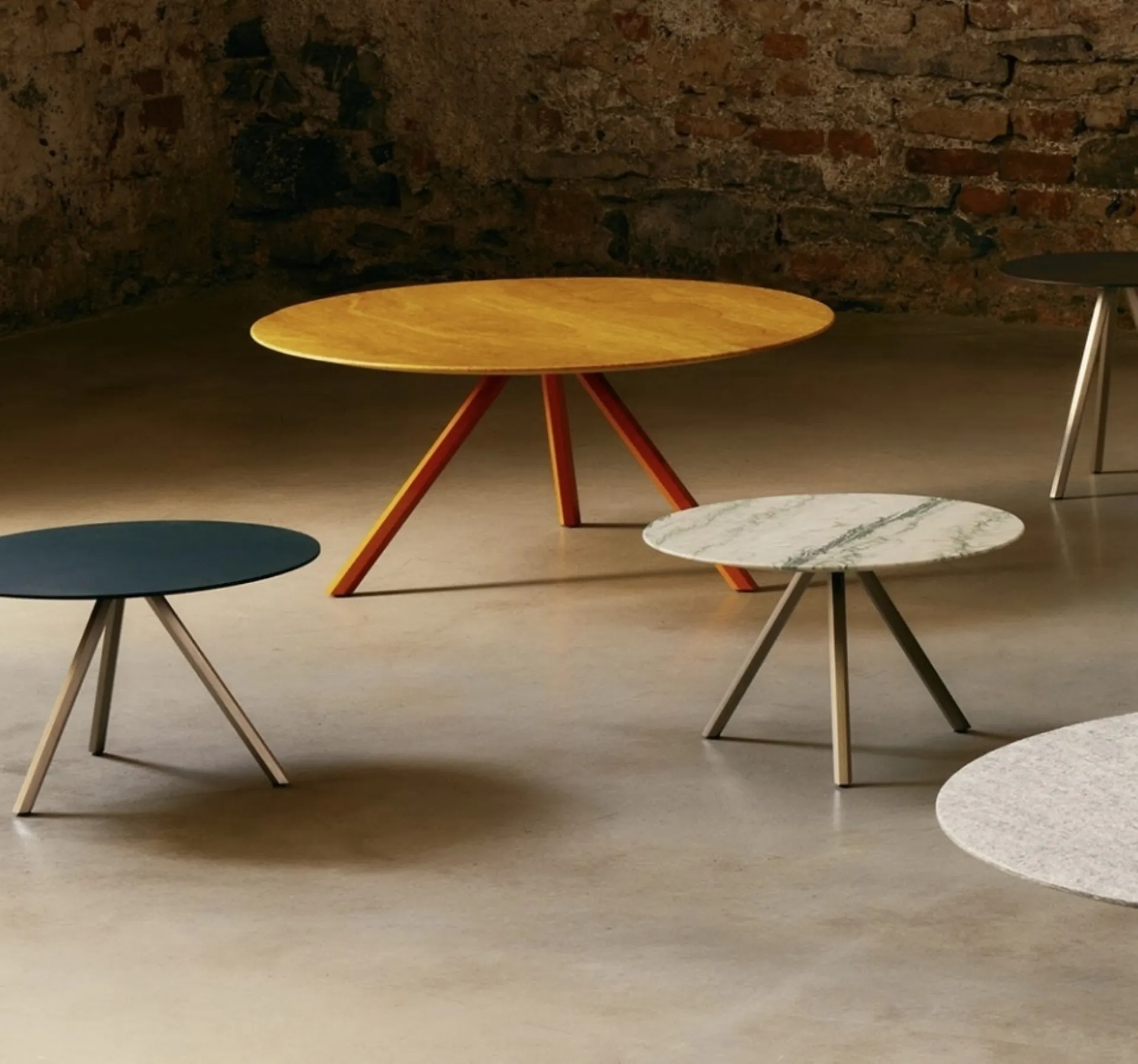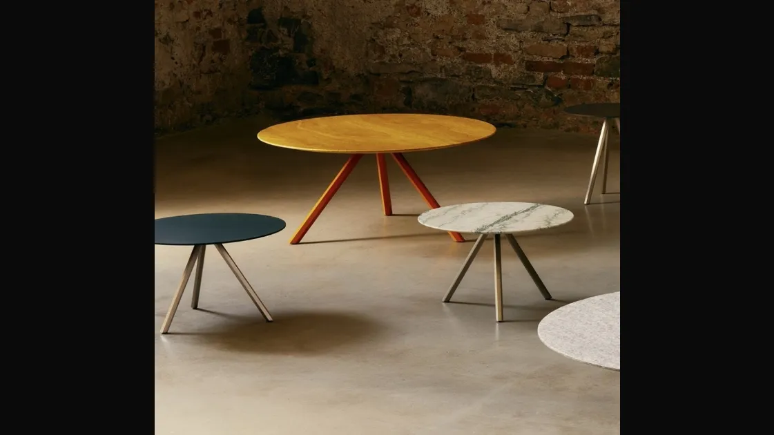 The charming furniture compositions of the Desalto brand make interiors beautiful with color and style, recreating particular furnishing atmospheres. Highly versatile and multifunctional, the modern marble Complements serve different functions: they complete the practical qualities and the aesthetics of the room. In our showroom, you can see the excellence of the company's modern marble coffee table models firsthand, just like this solution in the photo. Complements and coffee tables complete the furnishing of the home, filling the space in a useful way and making it welcoming and pleasing to the eye. The Mini Heb coffee table with a marble top by Desalto: it will give character and charm to an interior furnished with furniture and accessories with modern references.