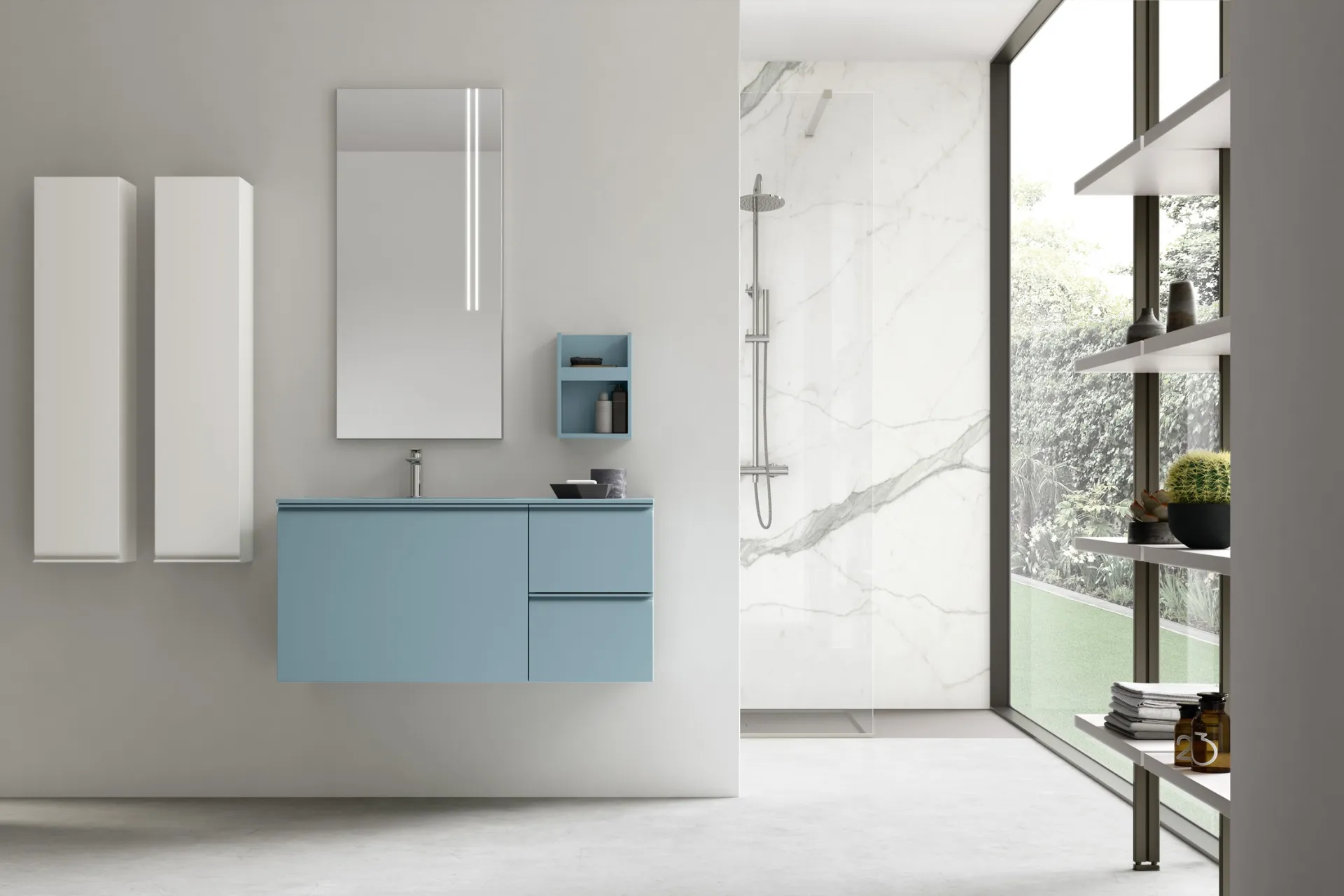 The matte lacquered model we present is designed to furnish the bathroom by perfectly combining great practicality and design. Remarkable attention to detail guarantees the quality that distinguishes each collection of Arcom's suspended bathroom furniture available from us. Arcom's Bathroom Furniture collections ensure excellent customization opportunities, exclusive design, great functionality, and ergonomics. The Matte Lacquered Suspended Bathroom Cabinet Virgola 06 by Arcom is suitable for furnishing a space that is beautiful to look at, functional, and easy to use. Every proposal of modern Bathroom Furniture with suspended bathroom furniture from the brand serves to make the destination space a pleasant one.