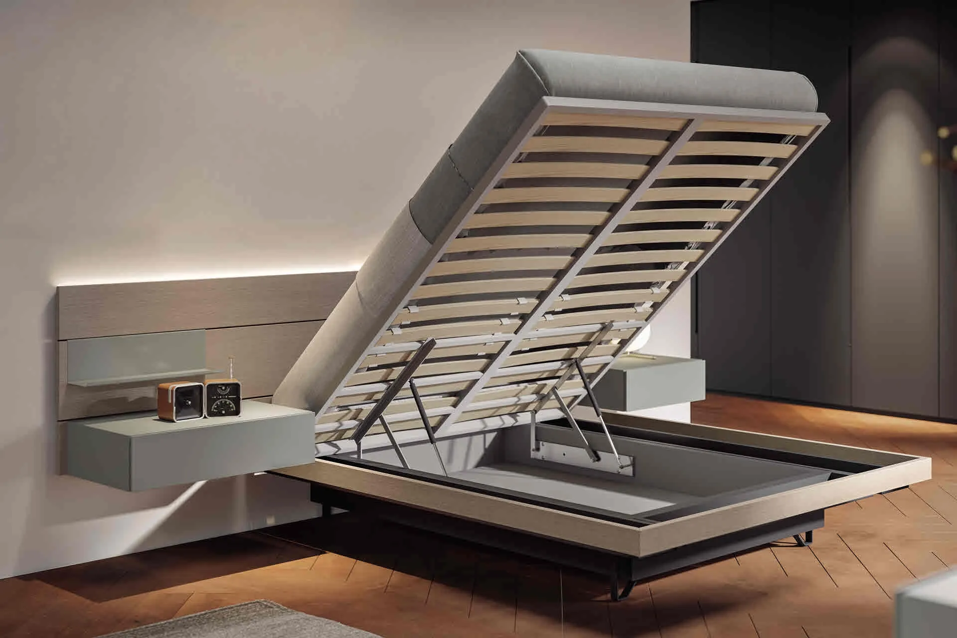 If you want to recreate an intimate and relaxing atmosphere, the model visible in the photo is perfect for you: in the relaxation room you will need to recreate a relaxing atmosphere, to regenerate your mental and physical energies every night. If you want to furnish modern spaces, we are waiting for you to show you our House Furniture profile to create your custom project. With the Bed 911 with storage box from Veneran of the renowned brand, a leader in the industry, you can enhance your sleeping area by ensuring comfort, practicality, and a refined style. Discover in our store a rich catalog of beds with storage, furniture, and accessories for the bedroom from the best brands.