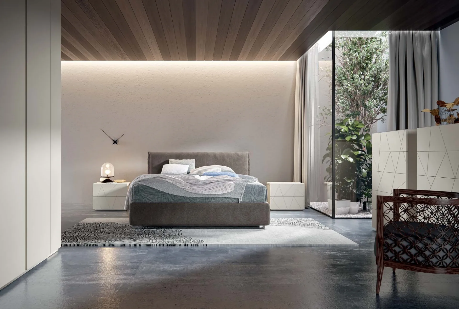 Bed with Avio headboard by Veneran: it will prove to be the ideal choice for modern spaces, it is a solution designed to ensure the deepest sleep you deserve. With Veneran's double beds in fabric, including the model in the image, you will have a beautiful and welcoming furniture in your bedroom. The renowned brand is a specialist in good sleep: a rich catalog of upholstered double models, also made of fabric, is waiting for you in our store. Beds are the focal point of every bedroom area, essential furnishings to ensure a complete and rejuvenating sleep and the right support for the spine.