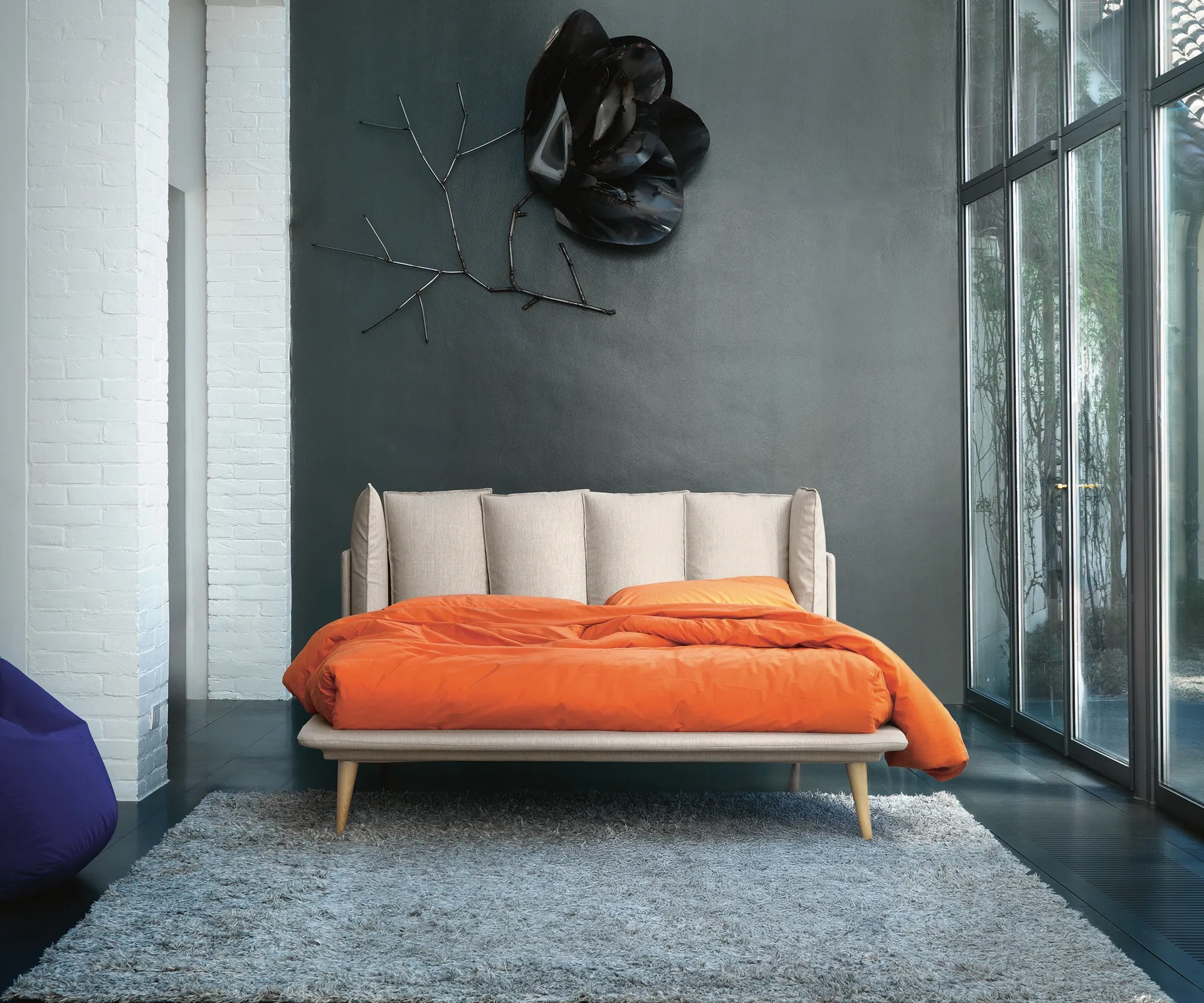 Choose shades and finishes and create your furnishing concept in the bedroom, designing it just as you have always imagined it. The upholstered double beds of the brand, specializing in the production of furniture for the rest area, are designed to be combined with furniture and accessories of all kinds, such as wardrobes and bedside tables, lamps and floor lamps. If you want a fabric solution, the model shown in the photo is characterized by durable materials and sharp lines, inviting you to have a quiet and restful sleep. The Birdland headboard bed by Noctis recreates an intimate and comfortable space in every bedroom, guaranteeing you the best rest and a unique style.