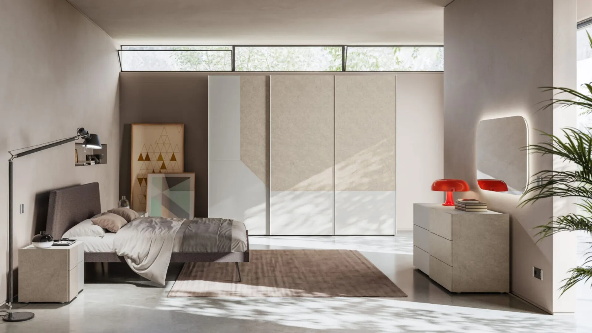 Discover a rich catalog of upholstered beds from the best furniture brands available in our showroom and enhance your bedroom. On our website you can find the best proposals from the top brands specializing in furniture for the rest area, with a wide range of customization options in terms of colors and combinations, accessories and much more. If you want to ensure total comfort during your moments of rest, choose modern double beds in melamine like the model shown in the photo. The bedroom is the space in the house that most reflects the personality of those who frequent it, a room dedicated to relaxation, unwinding, and privacy.
