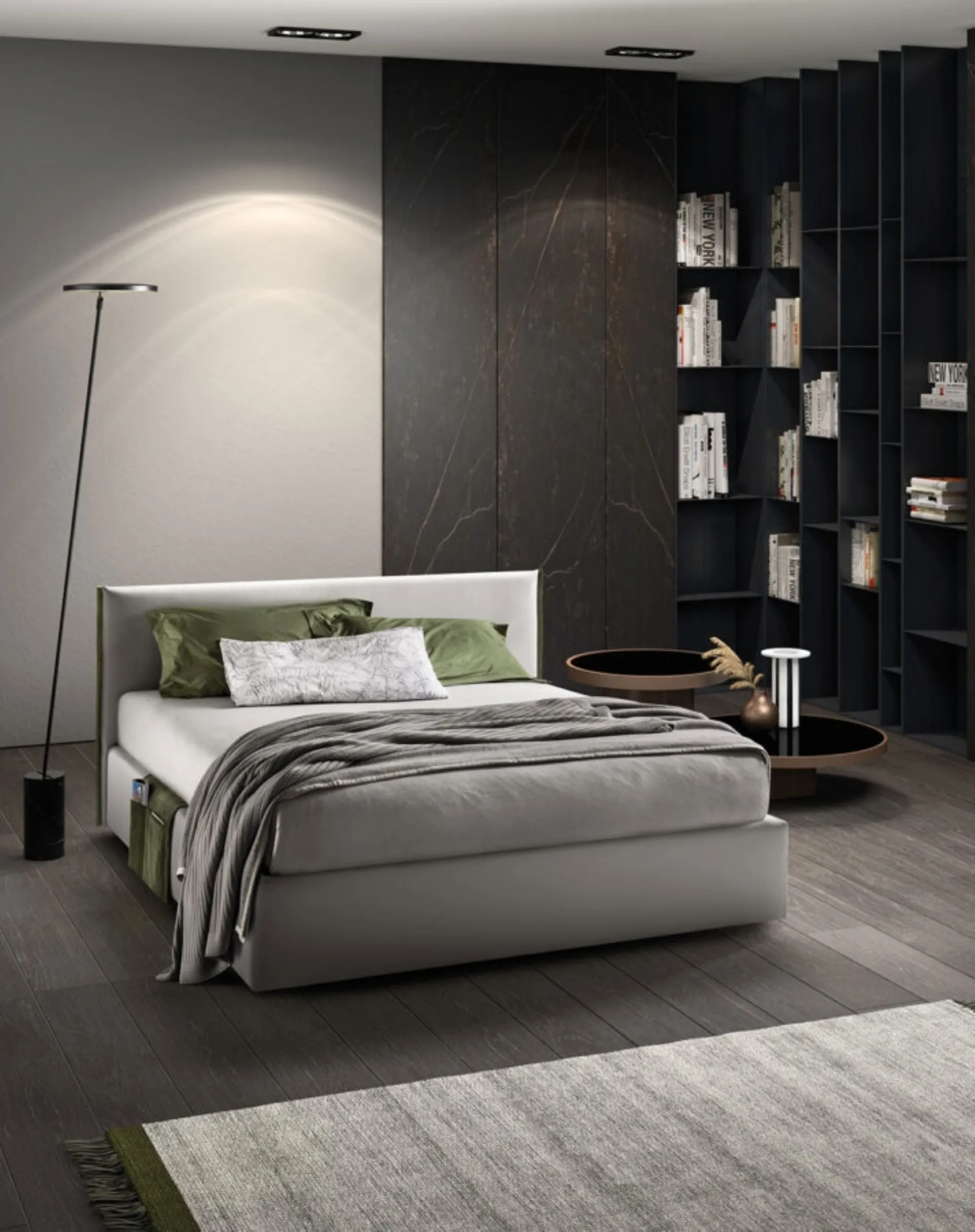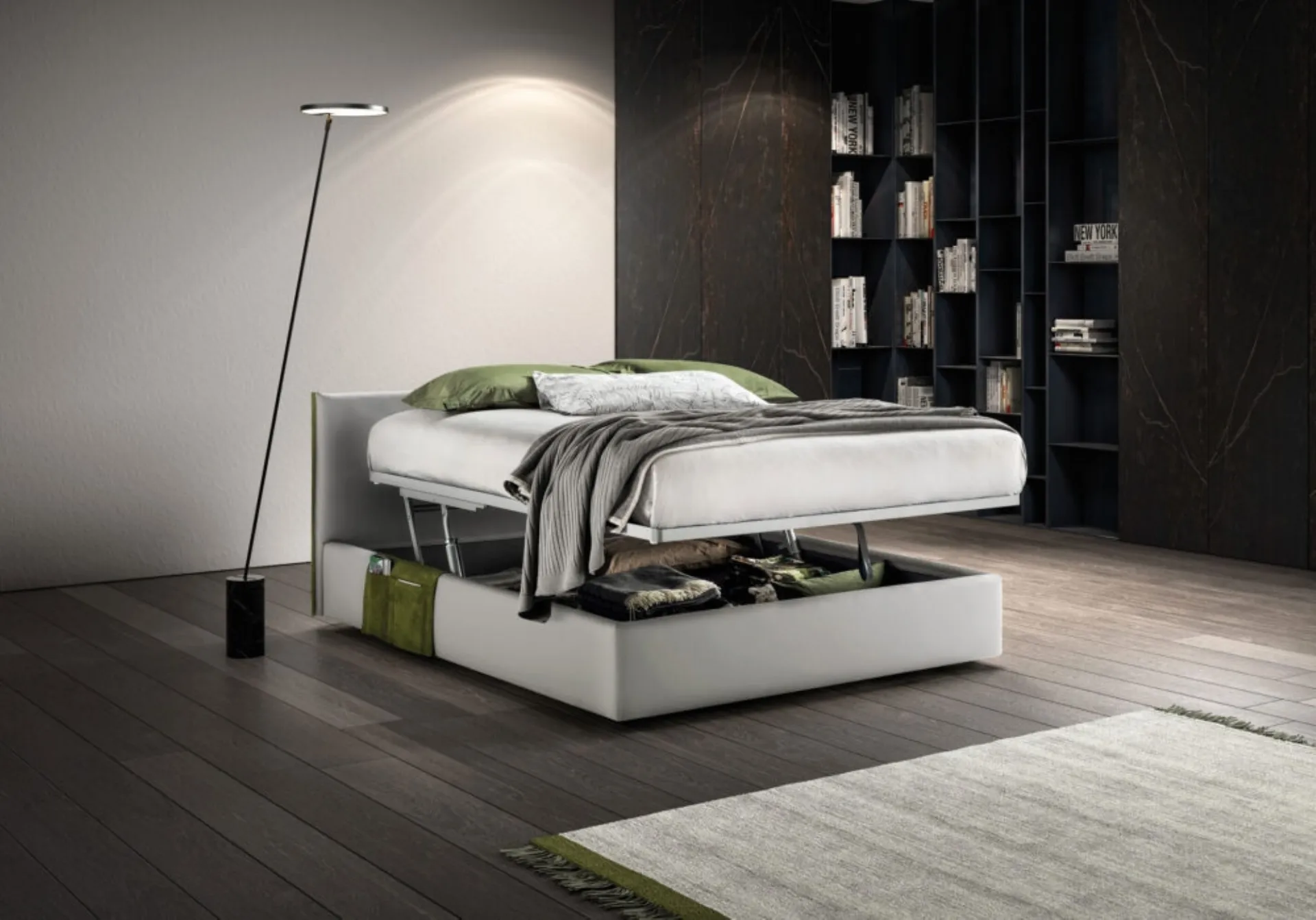 The bedroom is the place in the house that best represents the personality of whoever uses it, being the interior dedicated to rest, relaxation, and privacy. The Good Rim storage bed by Bside is one of the most original solutions offered by the brand, specialized in ensuring a good night's sleep, providing practicality, comfort, and a unique style. If you want to ensure the utmost comfort in your moments of rest, choose modern double beds in fabric like the model in the photo. Discover a rich catalog of storage beds from the best Home Furnishing manufacturers available in-store and enhance your bedroom.