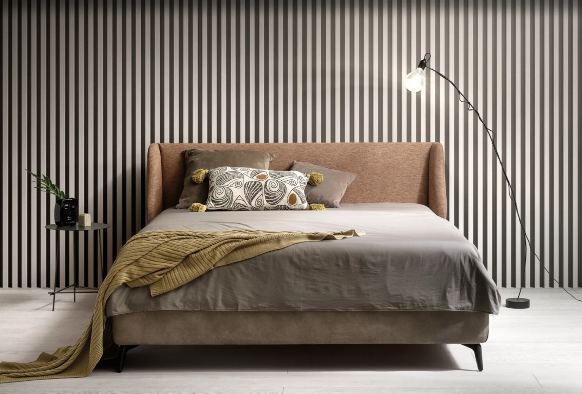 Discover a wide range of upholstered beds from the best Furniture Home manufacturers available in-store and enhance your bedroom. On our website, you can find the best proposals from the top manufacturers specialized in furnishing the bedroom area, with a wide range of customization options in terms of colors and combinations, accessories, and much more. The bedroom is the space in the house that reflects the personality of the user the most, the room par excellence dedicated to relaxation, unwinding, and privacy. If you want to ensure the utmost comfort in your restful moments, choose modern double beds in fabric like the model shown in the photo.