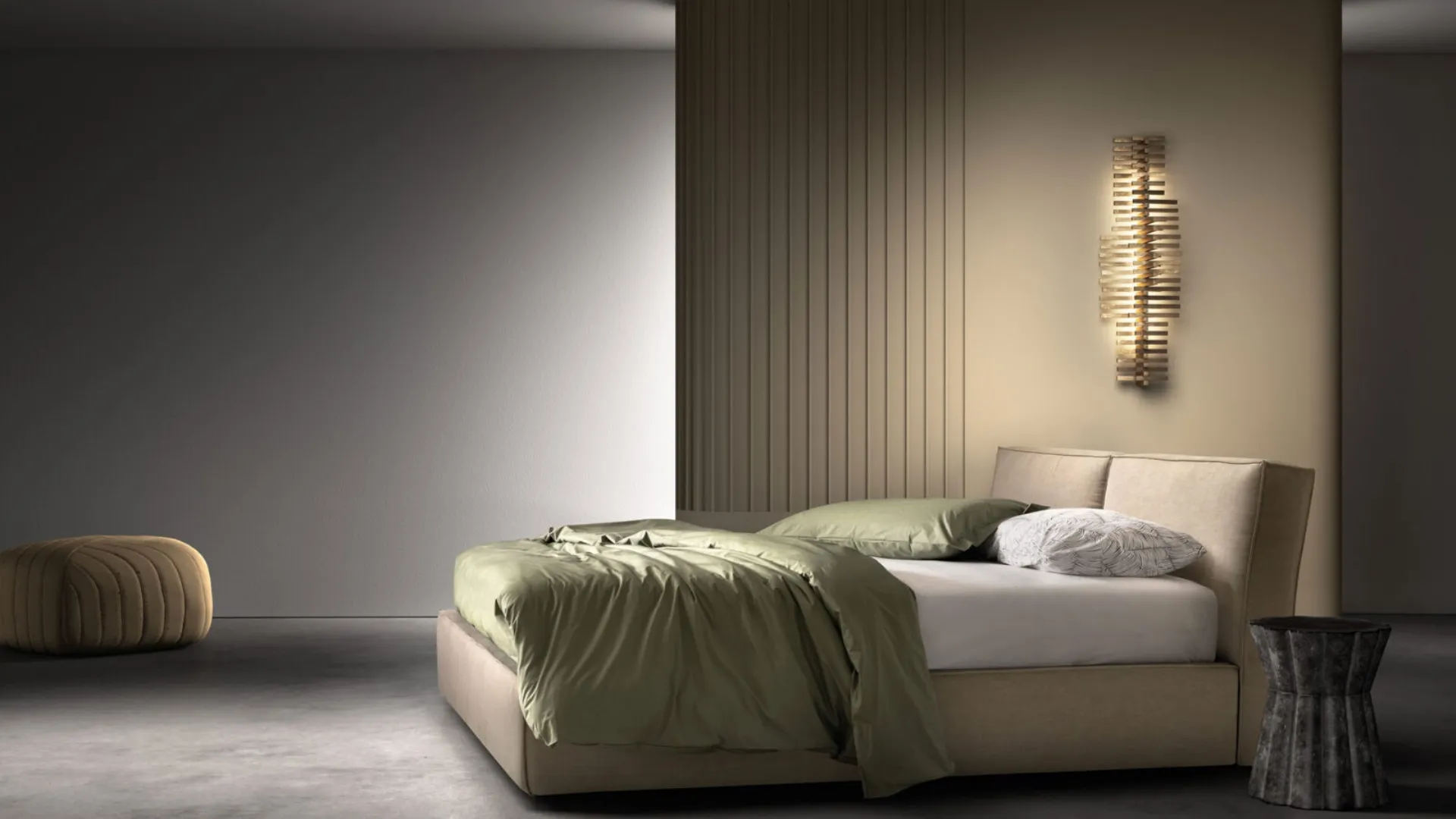 Choose colors and textures and create your furnishing concept in the bedroom, designing it just as you had dreamed. The Upholstered double beds of the brand, a leader in the production of Home Furnishings for the bedroom, are designed to be paired with furniture and accessories of all kinds, such as wardrobes and dressers, bedside tables and floor lamps. If you want a fabric solution, the model visible in the photo is characterized by precious materials and sharp lines, which invite you to have a complete and rejuvenating rest. When choosing a good bed model, carefully consider its dimensions, materials, shape, and its style compared to the rest of the furniture pieces.