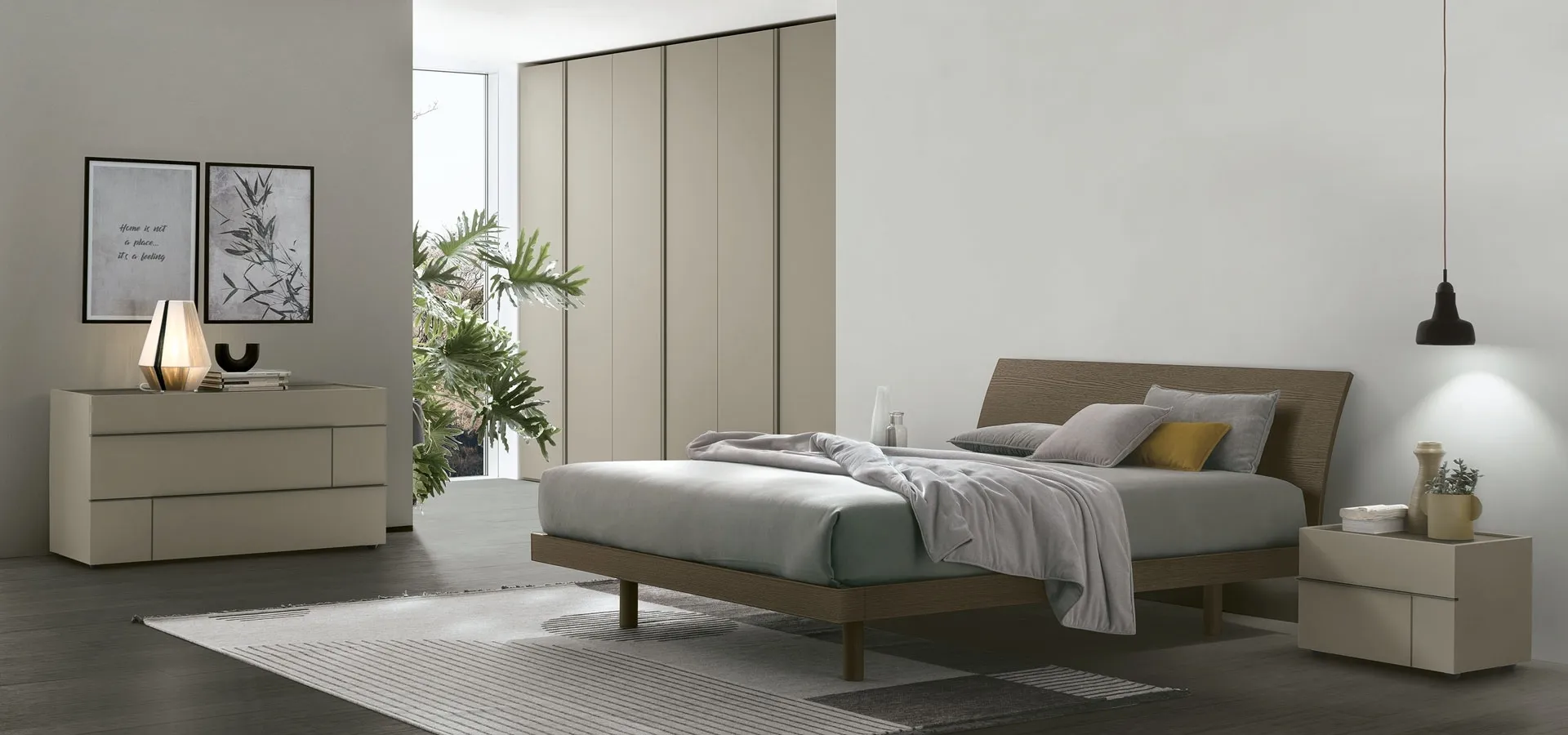When choosing the right type of bed, carefully consider its dimensions, finishes, shape, and style compared to the other pieces of furniture. Choose tones and finishes and create your furnishing concept in the bedroom, designing it just as you have always imagined. If you desire a solution in melamine, the model shown in the photo is characterized by high-quality materials and bold shapes that invite you to enjoy a deep and restful sleep. The Narciso bed with headboard by Tomasella recreates a familiar and comfortable space in every bedroom, guaranteeing you the deepest sleep and a unique style. The double beds with headboard from the brand, which specializes in the creation of home furnishings for the bedroom, are designed to be paired with furniture and accessories of all kinds, such as wardrobes and bedside tables, lamps, and floor lamps.