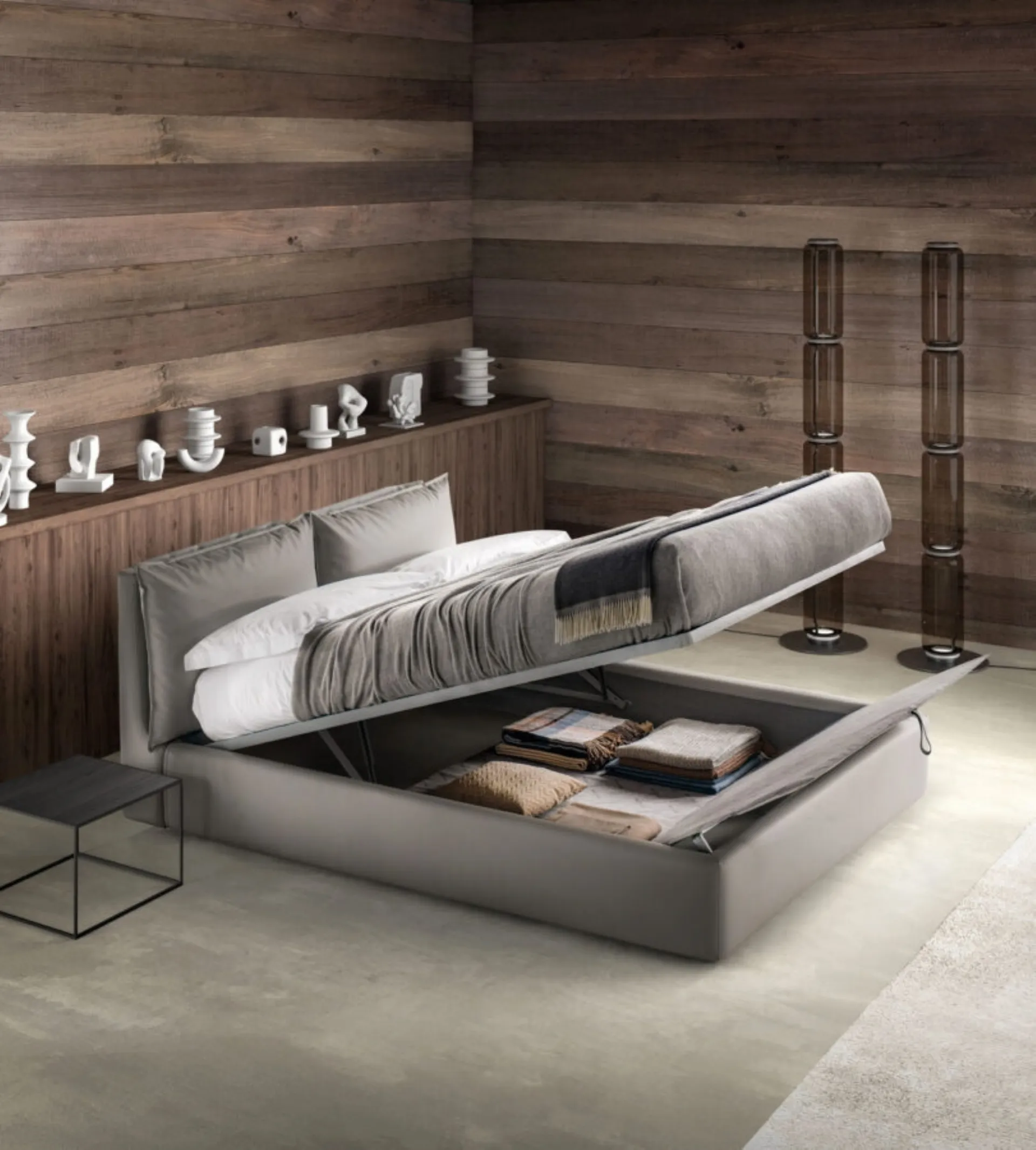 Quiet storage bed by Bside: it will prove to be ideal for modern spaces, it is a composition designed to ensure the best rest every night. Beds are the protagonists of every rest area, essential furnishings to ensure deep and restorative rest and optimal support for the spine. The well-known and renowned brand is the sleep specialist: a wide range of double models with storage, also made of fabric, is waiting for you in store. With Bside's fabric double beds, including the model in the photo, you will have a beautiful and welcoming piece of furniture in your room.
