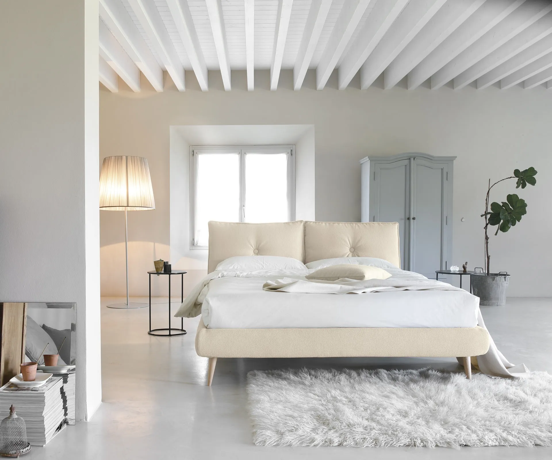 The bedroom is the area of the house that most reflects the personality of those who frequent it, a room dedicated to rest, relaxation, and privacy. Discover a wide range of upholstered beds from the best furniture brands available in our showroom and optimize your sleeping area. If you want to ensure total comfort during your moments of rest, choose modern double beds in fabric like the model visible in the photo. On our website, you can find the best proposals from top brands specializing in bedroom furniture, with a wide range of customization options in terms of colors, combinations, accessories, and much more.