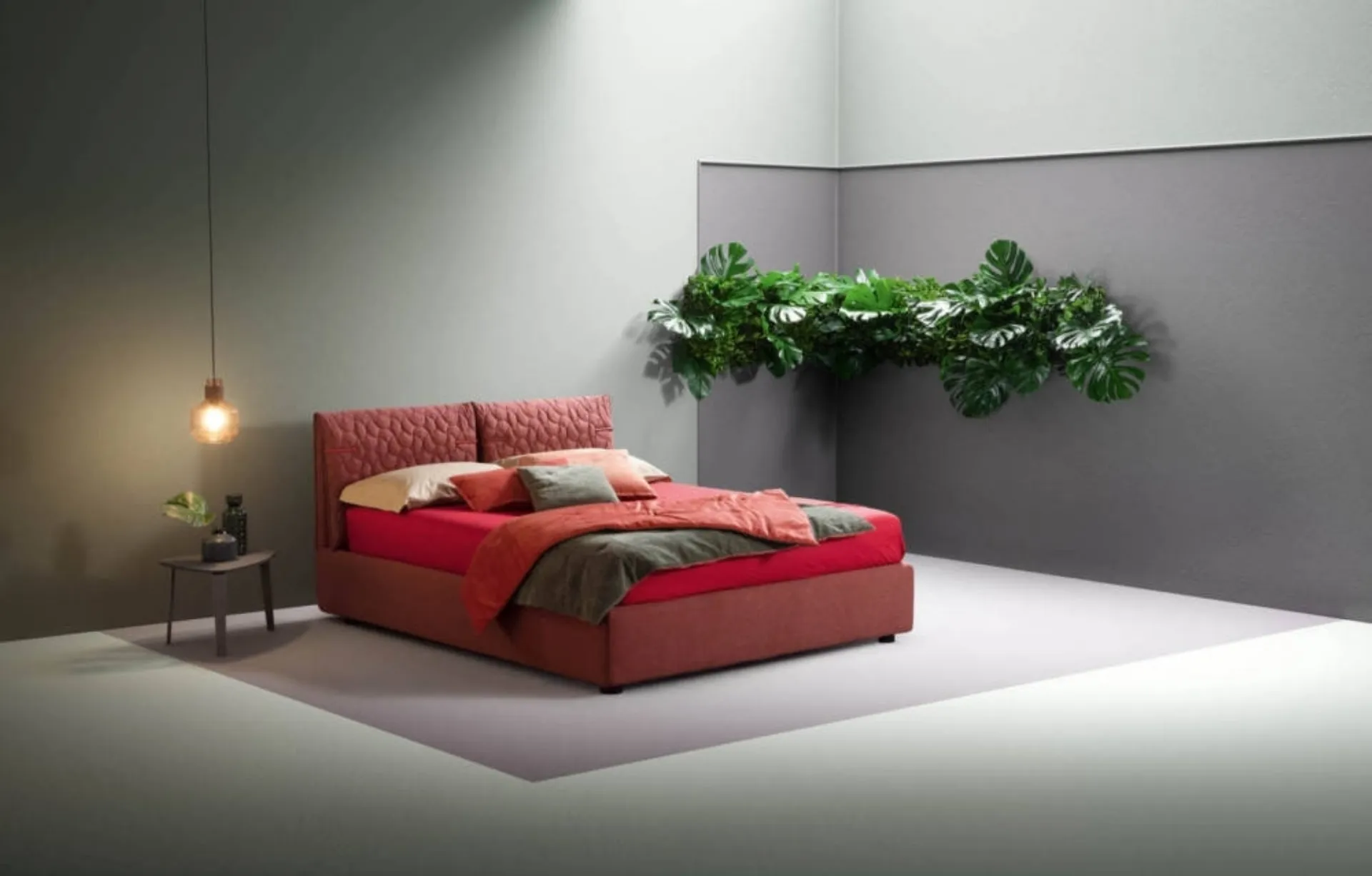 The bedroom is the place in the house that most reflects the personality of the person who uses it, a room dedicated to relaxation, unwinding and privacy. Discover a wide range of upholstered beds from the best furniture brands available in our showroom and enhance your bedroom. If you want to ensure the utmost comfort in your moments of relaxation, choose modern double beds in fabric like the model shown in the photo. On our website, you will find the most valid solutions from the best brands specializing in bedroom furniture, with a wide range of customization options in terms of colors and combinations, accessories, and much more.