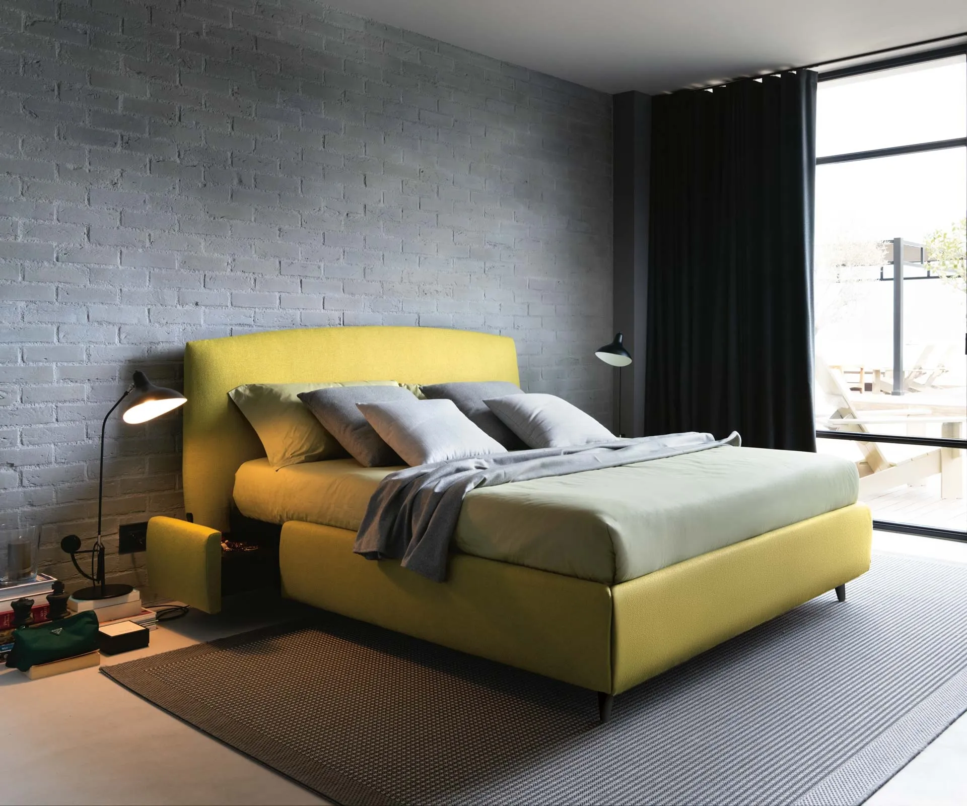 With us, you can create your bedroom just as you've always imagined it, functional and aesthetically pleasing, complete with a wide range of modern accessories. Beds are the focal point of every bedroom, essential furnishings to ensure a peaceful and restorative sleep and proper support for the spine. The renowned brand is a specialist in good sleep: a rich catalog of double bed models with storage, also made in fabric, is waiting for you in our showroom. Noctis' Sula upholstered bed: it will prove to be ideal for modern spaces, it is a proposal designed to ensure the deepest sleep every night.
