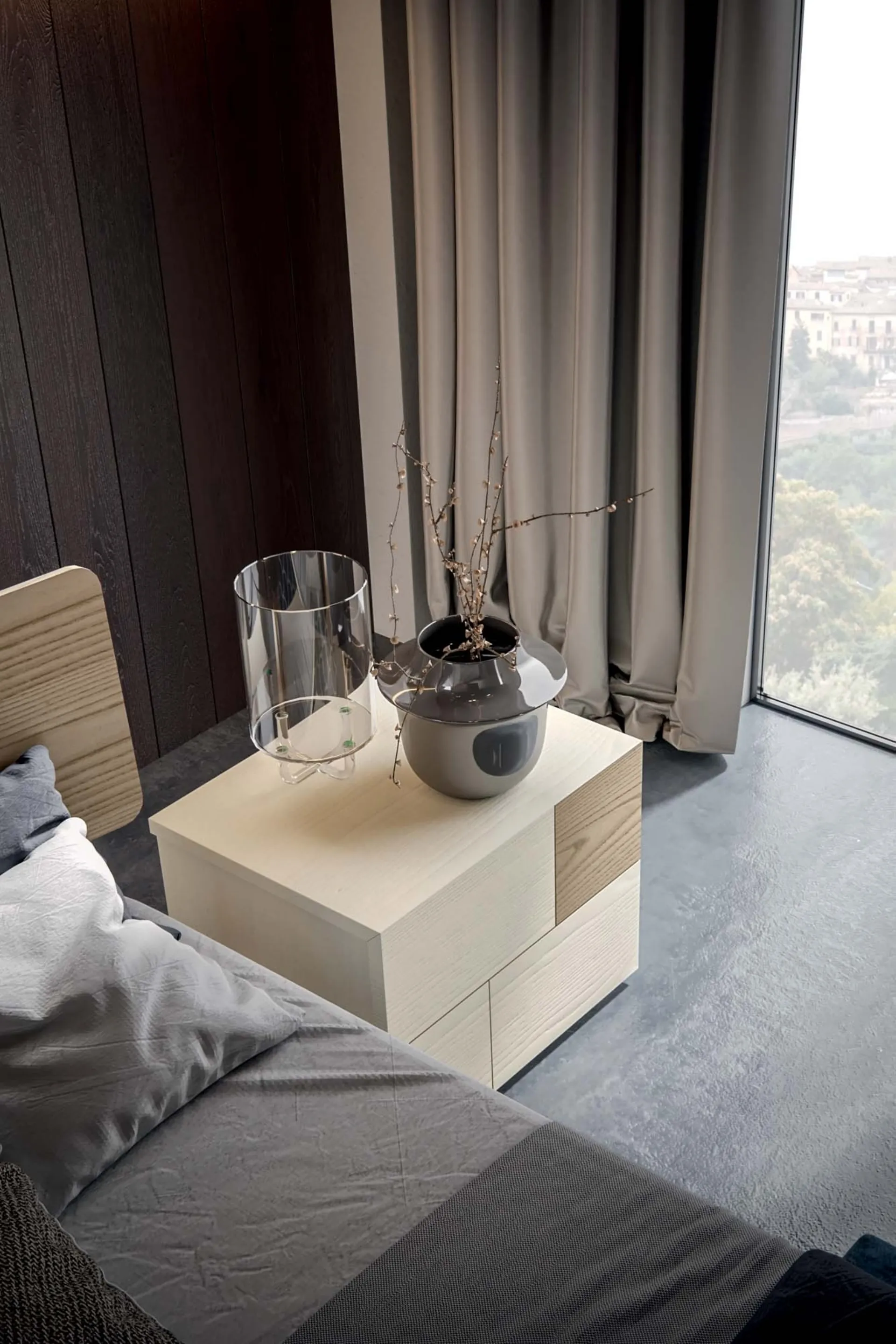 The bedroom area also includes bedside tables: furniture for storing everyday items that provide a place to put small things and offer surfaces for various uses. Optimize your spaces by choosing coordinated compositions of elements or create desired combinations of style and tones thanks to the furniture and accessories catalogue for the bedroom area that we offer, such as the wooden model visible in the photo, also customizable for you. With our modern bedroom sets from the Veneran brand, a leader in Home Furnishings for the bedroom area, you can recreate the bedroom you have always dreamed of.
