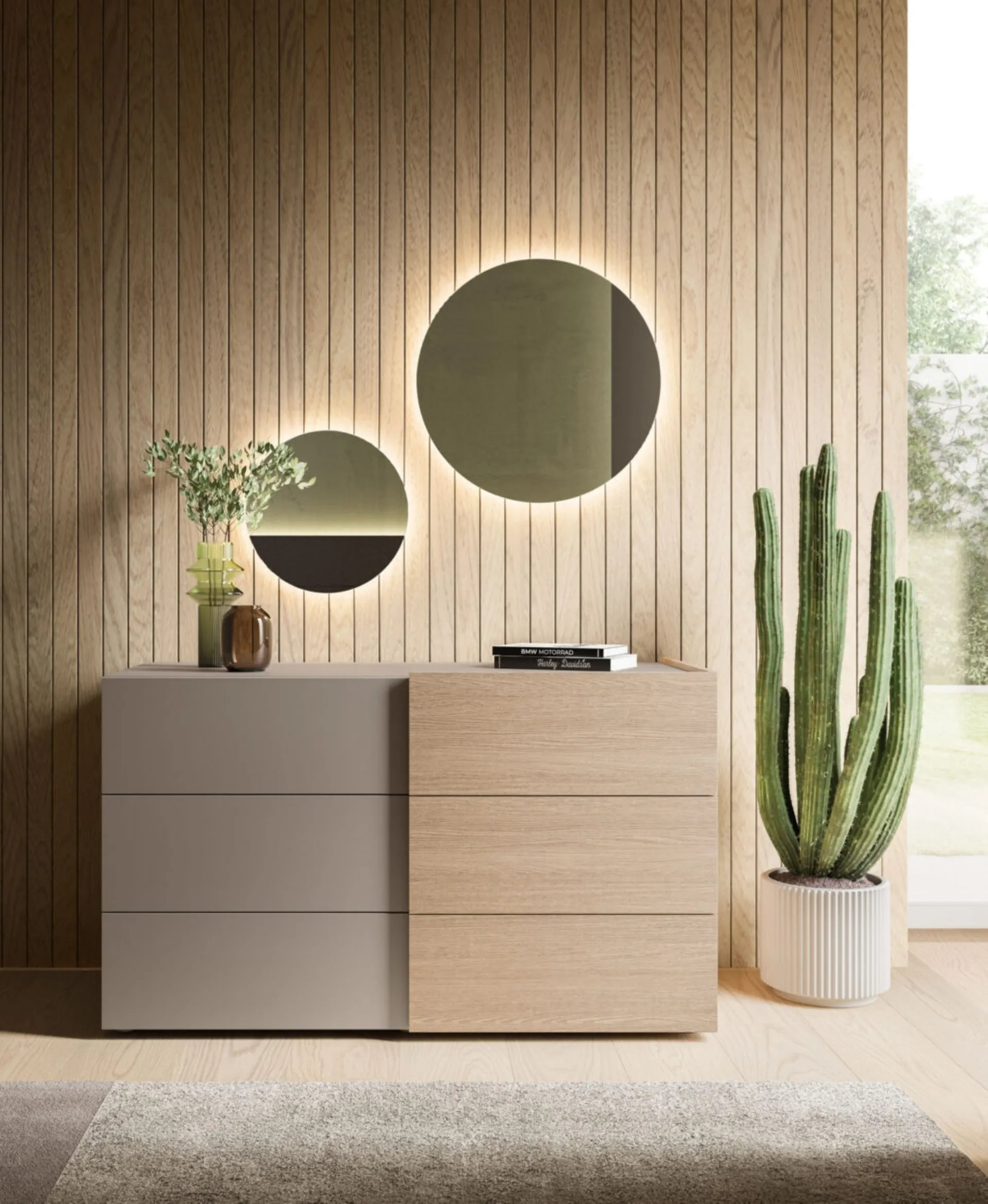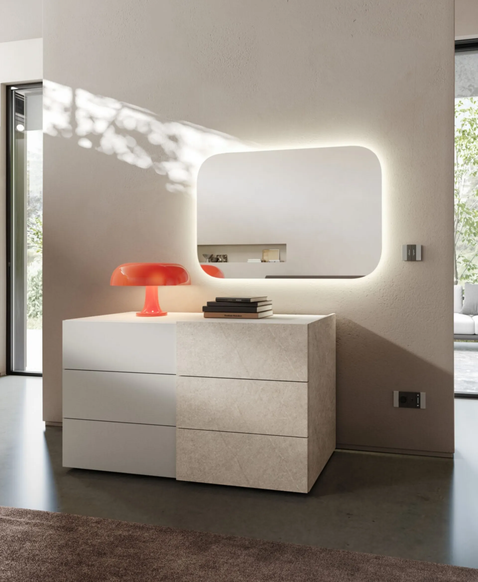 Are you wondering how to match beds, wardrobes, and bedside tables? With the Orme model visible in the photo, you will have a piece of furniture designed for a modern-inspired space. Durable materials and excellent craftsmanship for Orme's Double Chest of Drawers in melamine, available in the showroom along with other various offers from the brand, to make the bedroom a space that reflects your personality.
