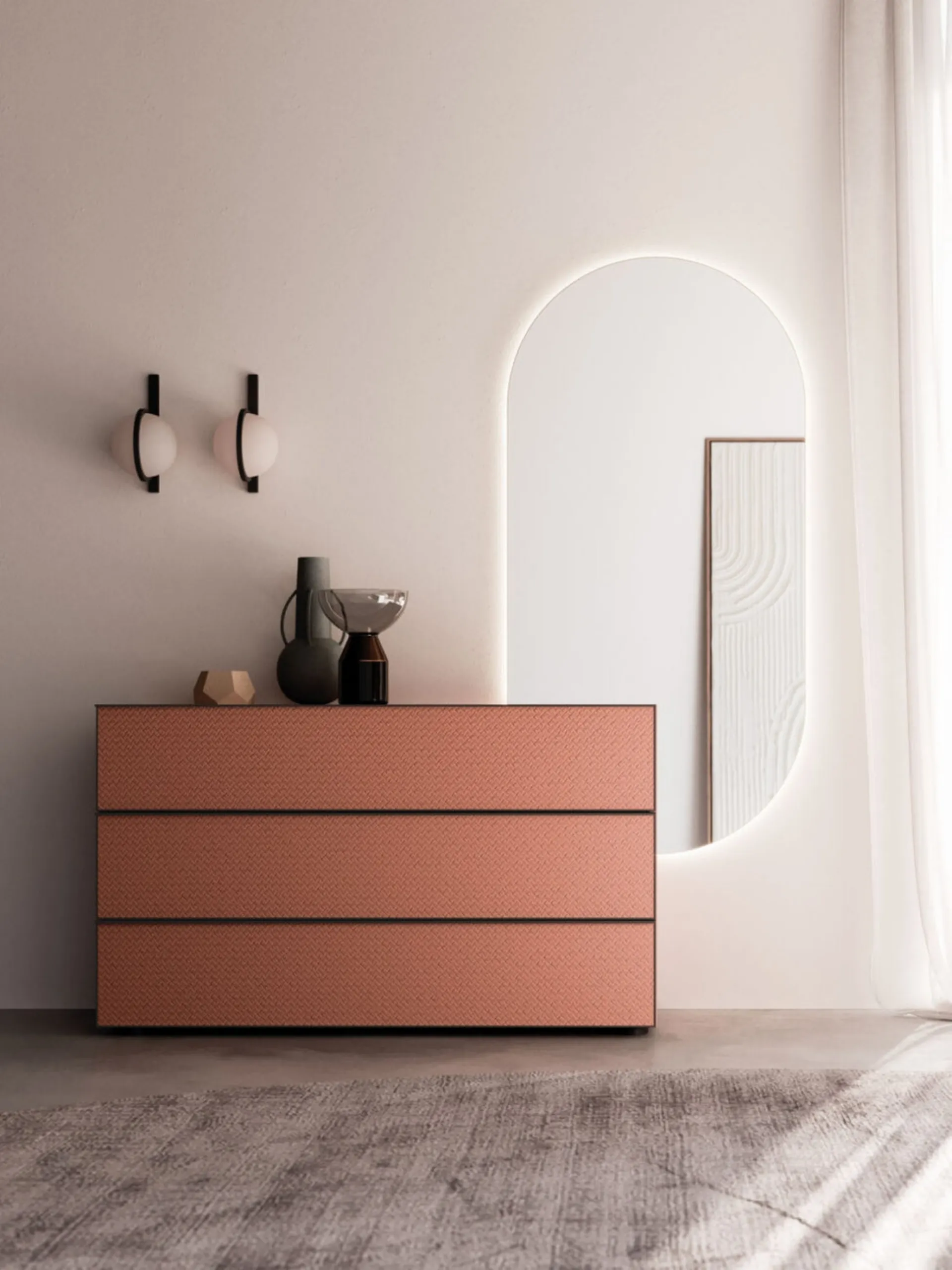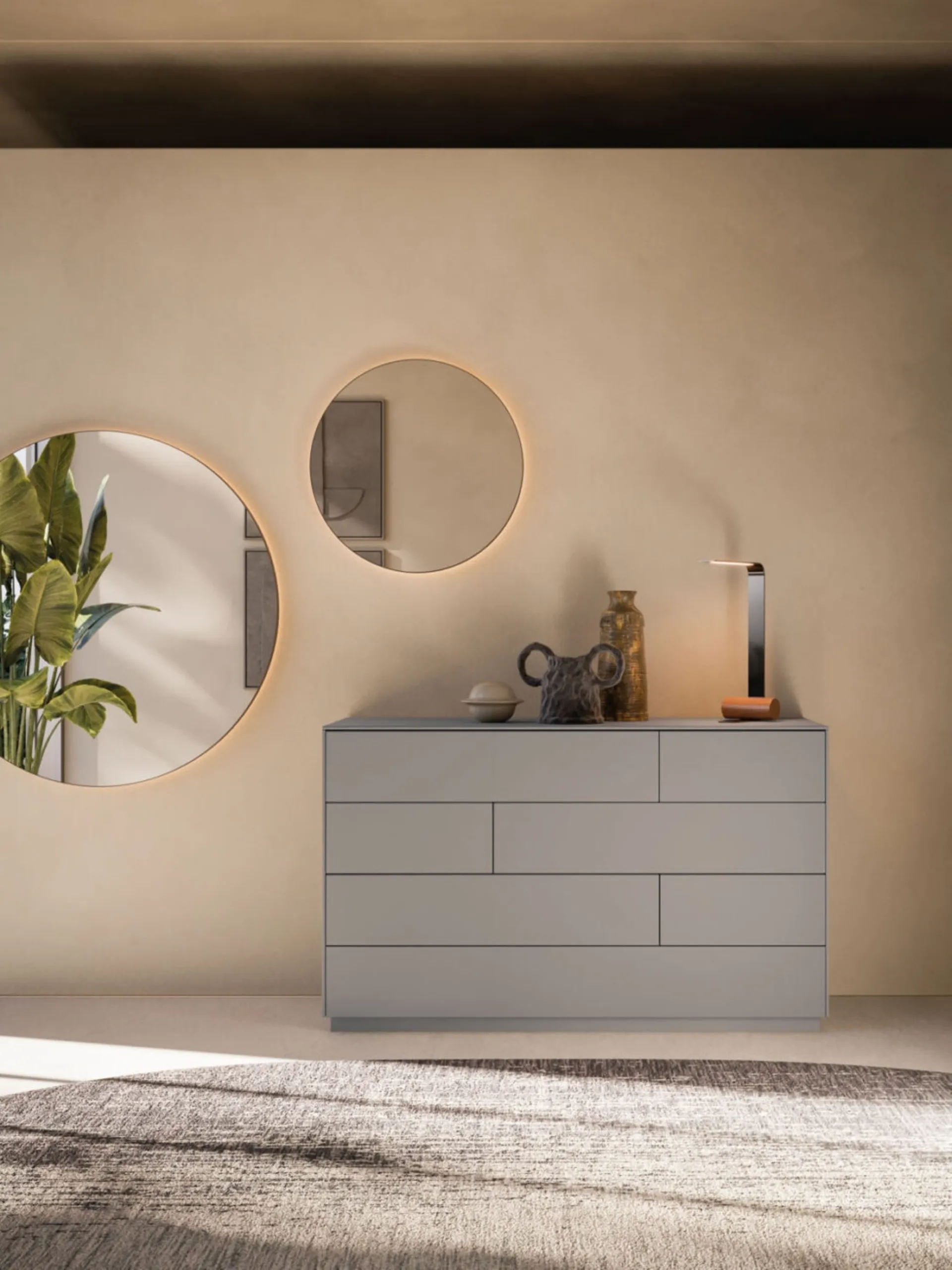 Bedside tables are furnishings capable of completing the bedroom, providing a useful and versatile support area. High-quality materials and excellent craftsmanship for the Soul chest of drawers by Orme in melamine, available in store along with other different ideas from the brand, to turn the sleeping area into a furnishing project that reflects your taste.