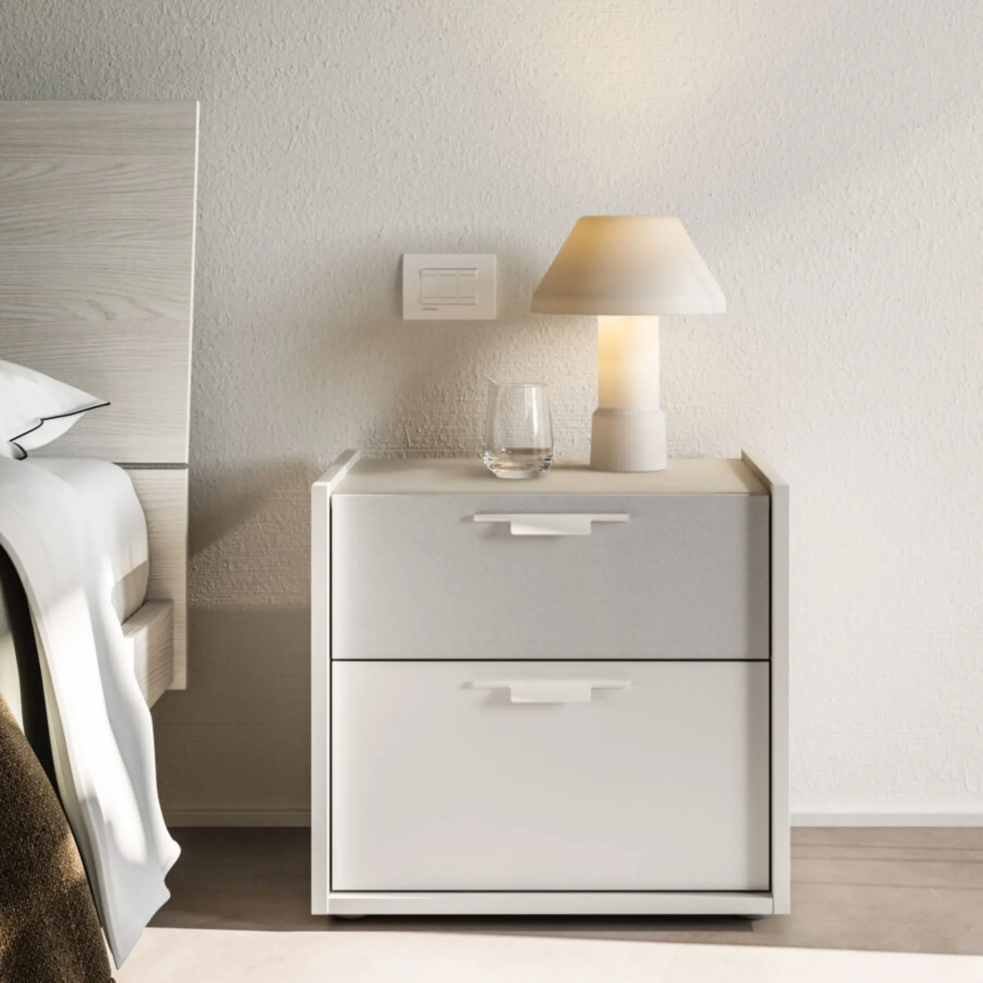 With our modern Orme brand bedroom furniture collections, you can recreate the bedroom of your dreams. Orme's Patti bedside table: contact us to learn more about our furnishing proposals and decorate your room as you've always imagined. Enhance your spaces by choosing coordinated sets or creating aesthetically pleasing style and color combinations thanks to our catalog of furniture and bedroom accessories, such as the melamine model shown in the photo, which can also be custom-made.