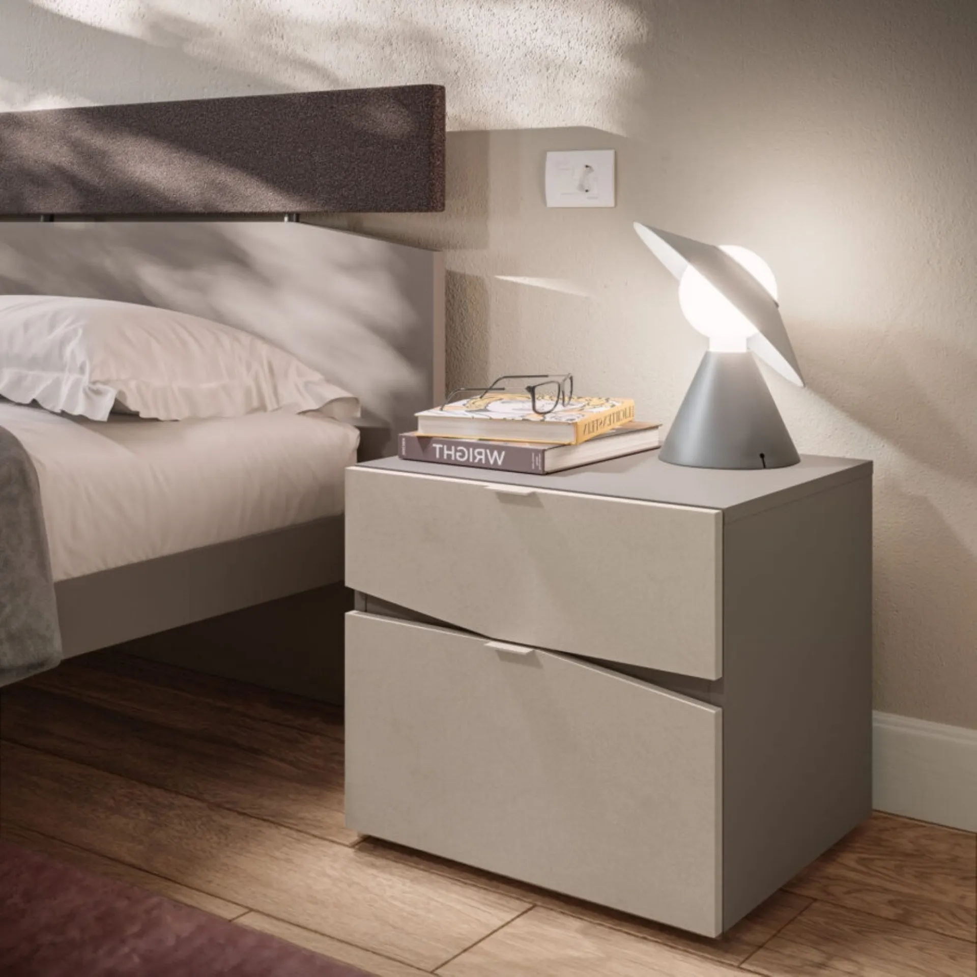 The melamine models of the company Orme, a leader in the production of wardrobes and dressers, allow for creating custom combinations or even having features in deliberate contrast with the remaining furniture pieces. Thanks to these furniture pieces, we have the opportunity to organize necessary objects or display accessory elements. Nightstands are some of the essential furniture and accessories in every bedroom, as they allow for completing the spaces by making good use of every corner. Slant Orme Nightstand: this is a type of versatile storage furniture capable of providing you with practicality and a great aesthetic effect in modern spaces.