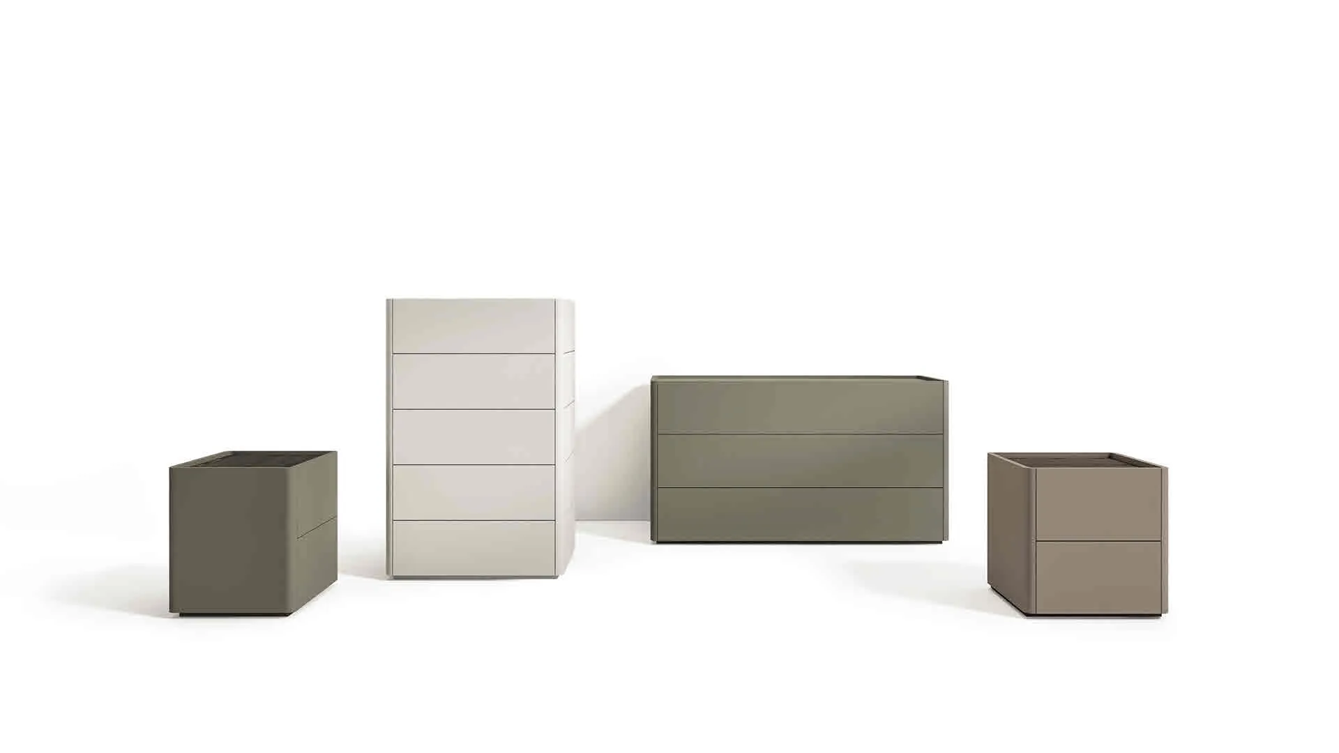 Durable materials and excellent craftsmanship for the Notte Dolcevita by Veneran Group in matte lacquer, available in the showroom along with other various offerings from the brand, to create a bedroom space that reflects your tastes. The bedside tables are furnishings capable of completing the bedroom, ensuring a useful and versatile support area.