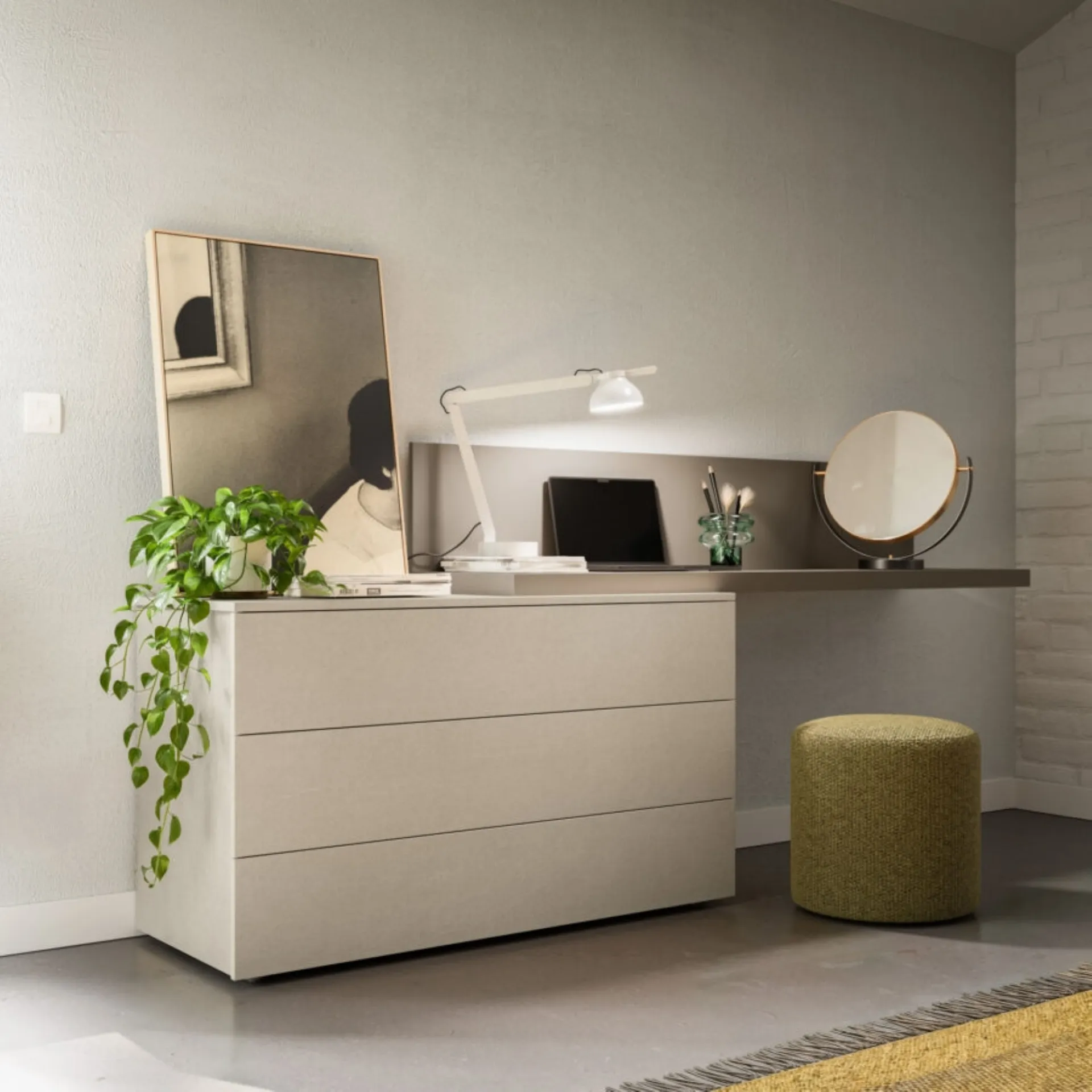 Do you wonder how to match beds, wardrobes, and bedside tables? With the Orme model visible in the photo, you will have a piece of furniture suitable for a space with modern references. High-quality materials and excellent workmanship for Orme's Wind Night Group in melamine, available in the showroom along with other various ideas from the company, to make the bedroom a furnishing project that reflects your personality.