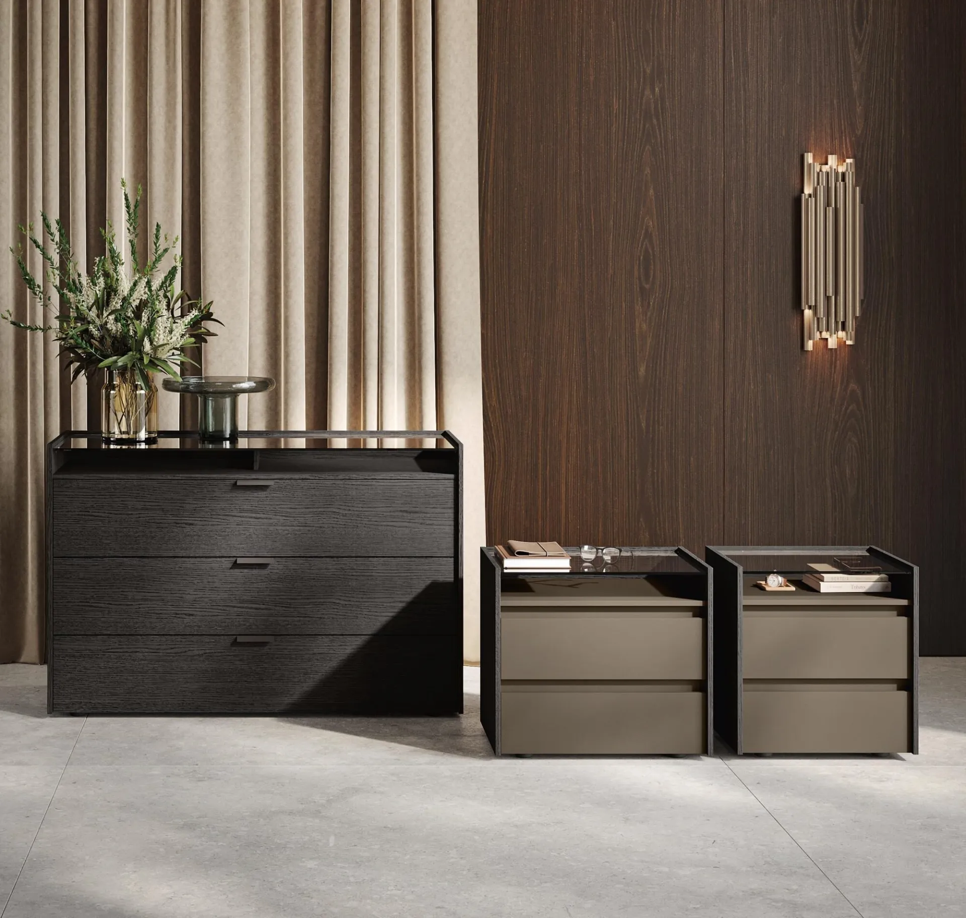 Bedside tables, dressers, and bedroom sets can be matched with the bed and wardrobe, or they can be deliberately contrasting with them: the choice will be based on the objective space possibilities and the search for a harmonious final effect. Enhance your rooms by ensuring plenty of practicality, surface for storage, and a unique style! The Kristal Night Group by Morassutti is one of the most beautiful solutions capable of adding an extra touch of style to the bedroom, using high-quality materials.