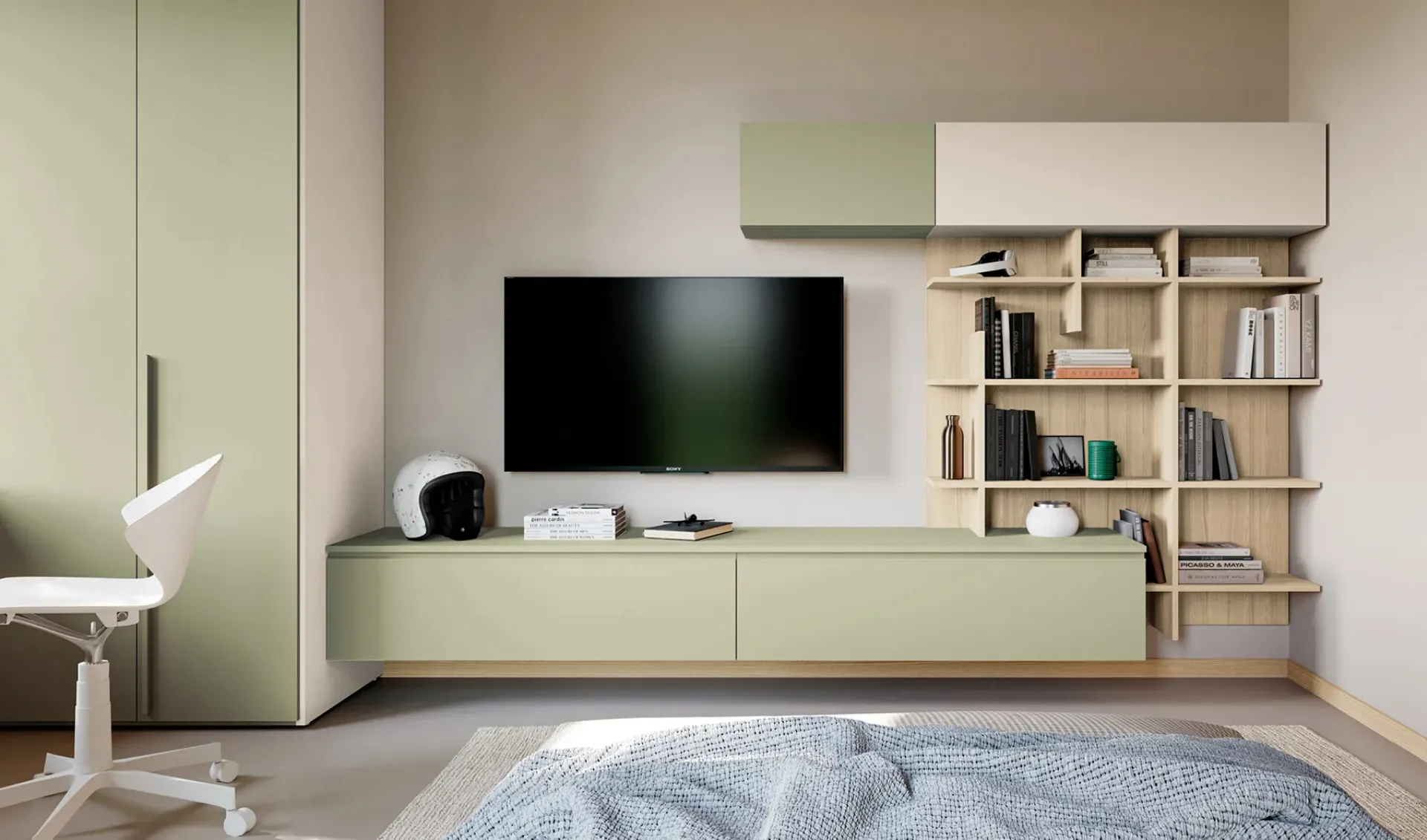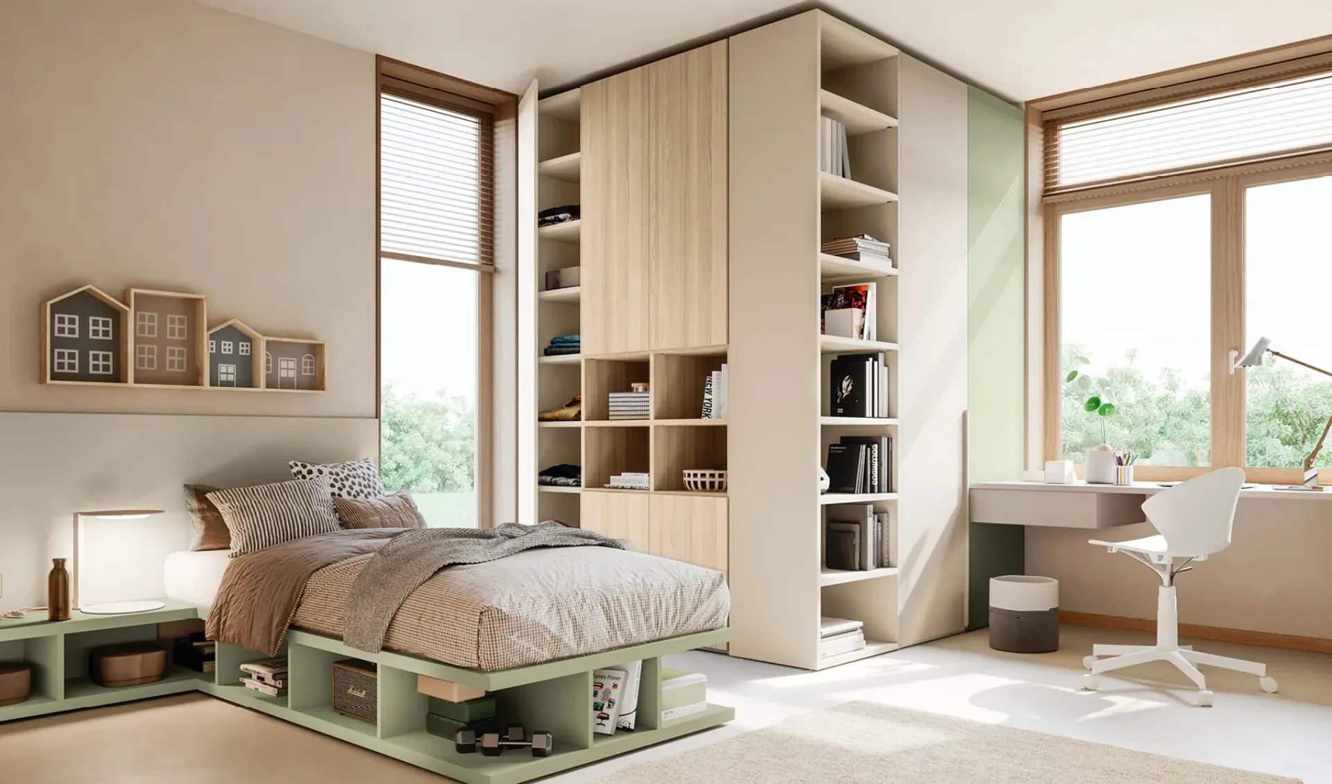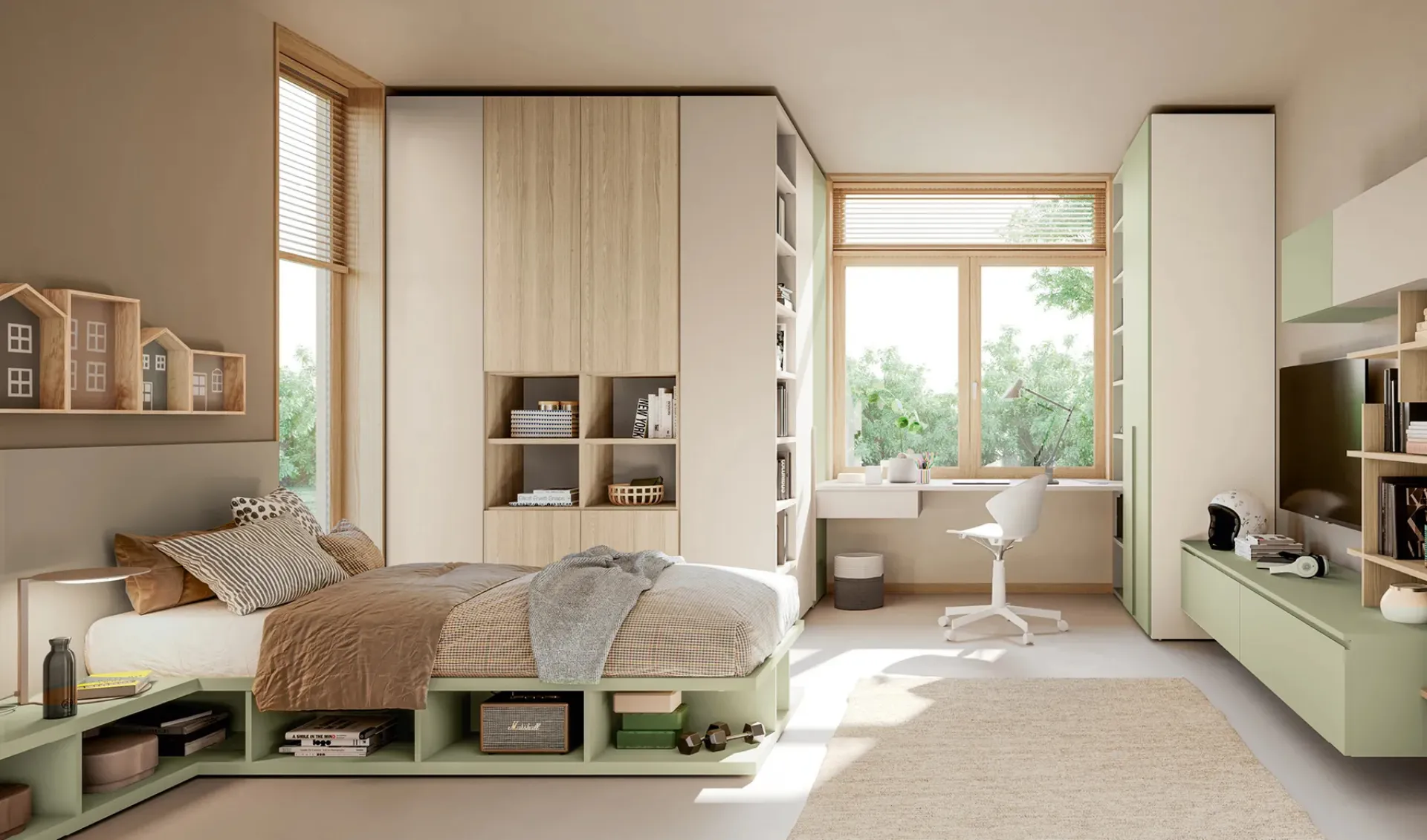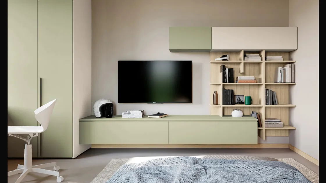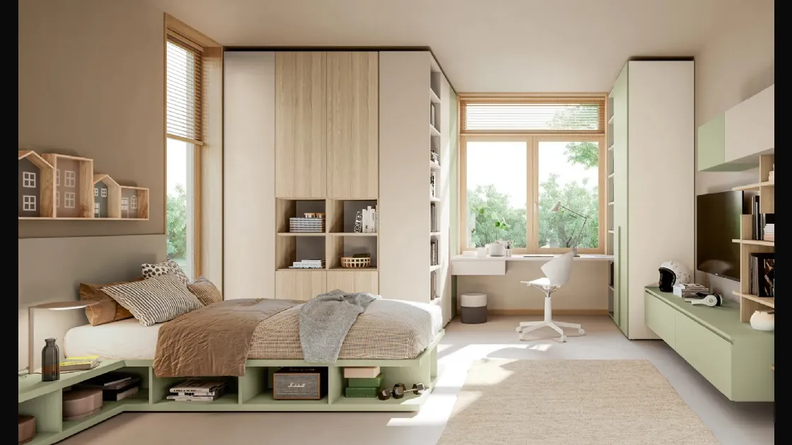 In our showroom, we offer multiple modern modular children's bedrooms from the brand, perfect for accompanying them as they grow. Our children spend a large part of their day in their bedrooms: make them suitable for studying, having fun, and relaxing every day. In our showroom, we guide you from choosing the furniture for the room to designing the place where your children will grow, have fun, and dream. With the Layout 14A children's bedroom by Doimo Cityline in melamine, you will ensure a perfect combination of ergonomics and safety, ideal for your children's room.