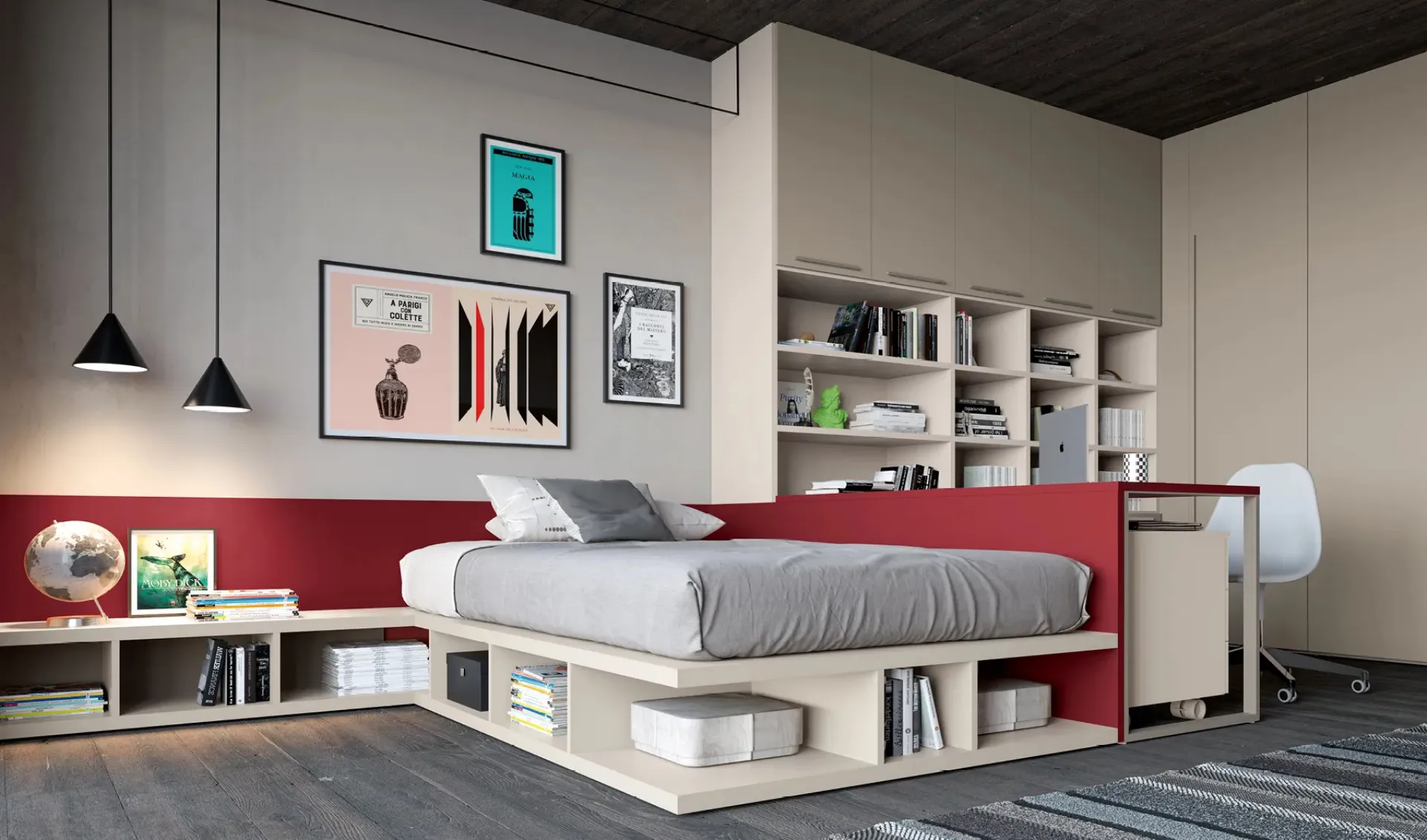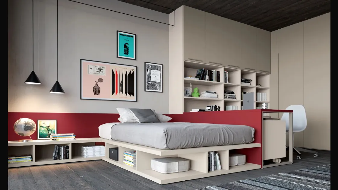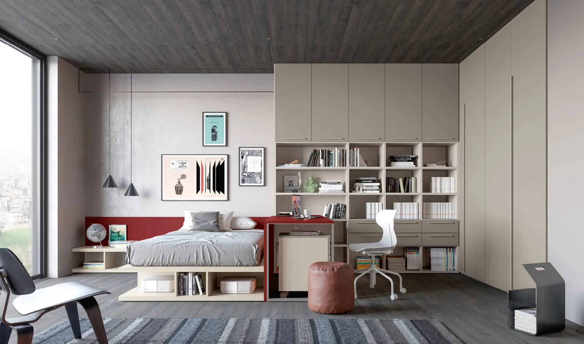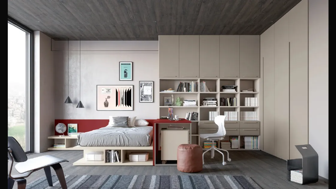 Trendy colors and excellent art projects characterize the most beautiful proposals of the well-known brand that we present in our store. Doimo Cityline caters to the style of children and the preferences of adults with its modular design bedrooms, ideal for all types of needs. The Layout 15A bedroom by Doimo Cityline in matte lacquer is a detailed universe to be carefully organized, mixing various custom accessories. Come to our store and you will be able to see in person all the most beautiful modular design furniture compositions by Doimo Cityline for the younger ones.