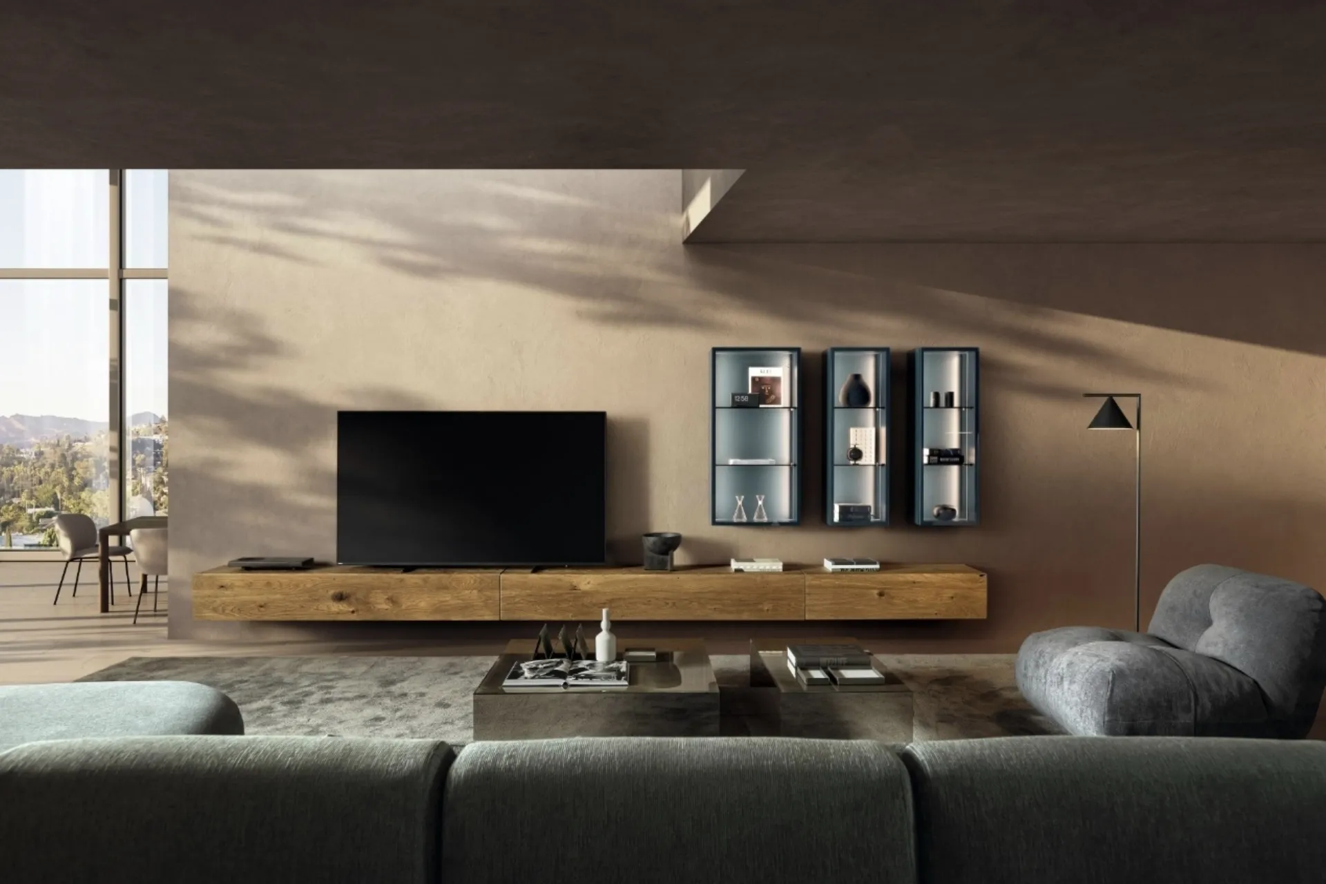 Through a dynamic game of combinations of open components or closed compartments, modern Wall Units furnish the living room by optimizing every space. This wall unit is one of the solutions of the brand and will allow you to furnish the living room according to your most personal living needs. Wall Units have taken on an important role in the living area of our homes: they are multi-functional and space-saving furniture always customizable for you.
