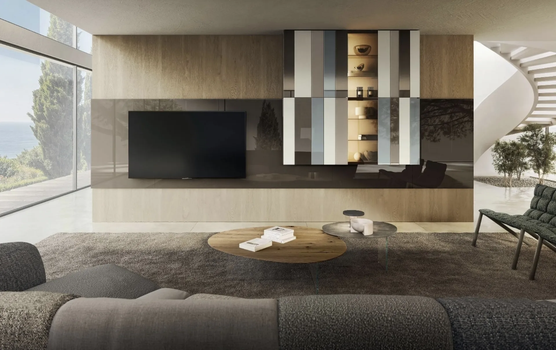 Wall units have taken on an important role in the living area of our homes: they are multifunctional and space-saving furniture that can always be customized for you. This wall unit is one of the solutions offered by the company and will allow you to furnish the living room according to your most personal living needs. Through a dynamic combination of open components and closed compartments, modern wall units furnish the living room by making the most of every space.