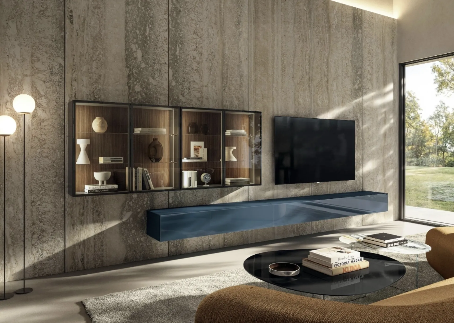 Having a multifunctional support plan in the living area, to store your objects and make the most of the available space, is essential. Keep in mind that the living area is the area of your home where you will often welcome friends and family: the space should be comfortable and pleasant to look at. The storage capacity of these modern furniture pieces from Lago, like the one in the photo, will ensure that you always have the space you need. Whether you intend to store everyday items or decorative objects, one of our modern and aesthetically valuable products will prove to be the optimal solution for you. Essential in making your home truly beautiful and of high quality, modern wall units personalize the spaces with the desired aesthetic outcomes.