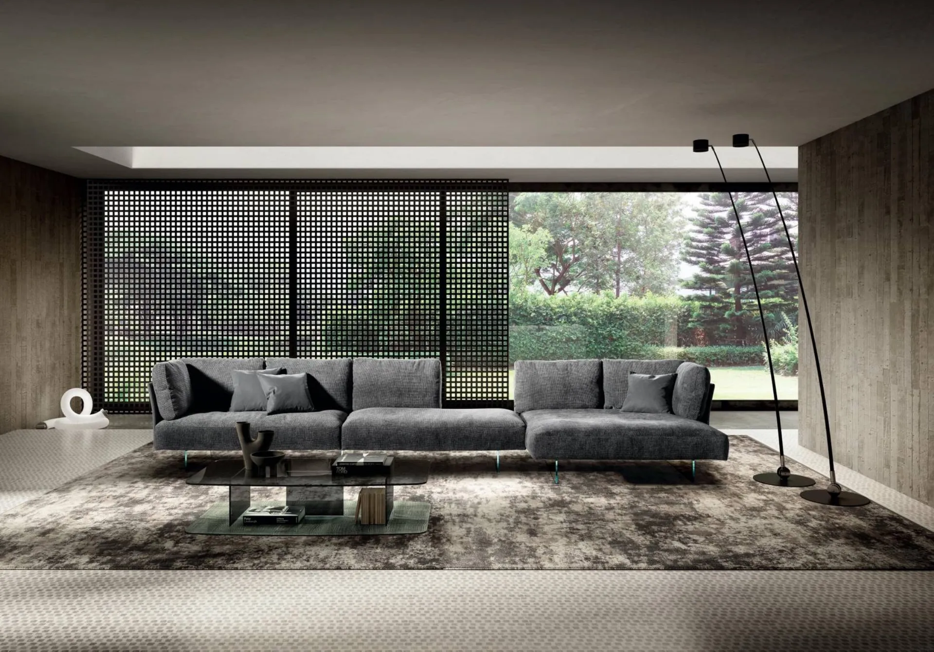 The living rooms are a truly essential element of the living space, to be carefully decorated by arranging sofas, armchairs, and poufs. Air Slim 2699 sofa with peninsula by Lago: let yourself be captivated by our proposals of designer sofas and armchairs that can ensure comfort, functionality, and style in your living room. The living room is the protagonist of the daytime environment of every home, the upholstered furniture are furnishing modules around which to spend moments of relaxation and socialization. Lago, a leader in the creation of sofas, has designed for the model in the image a refined and elegant fabric upholstery. Discover a wide range of upholstered furniture with peninsula from the best brands and optimize the living room you have always wanted.