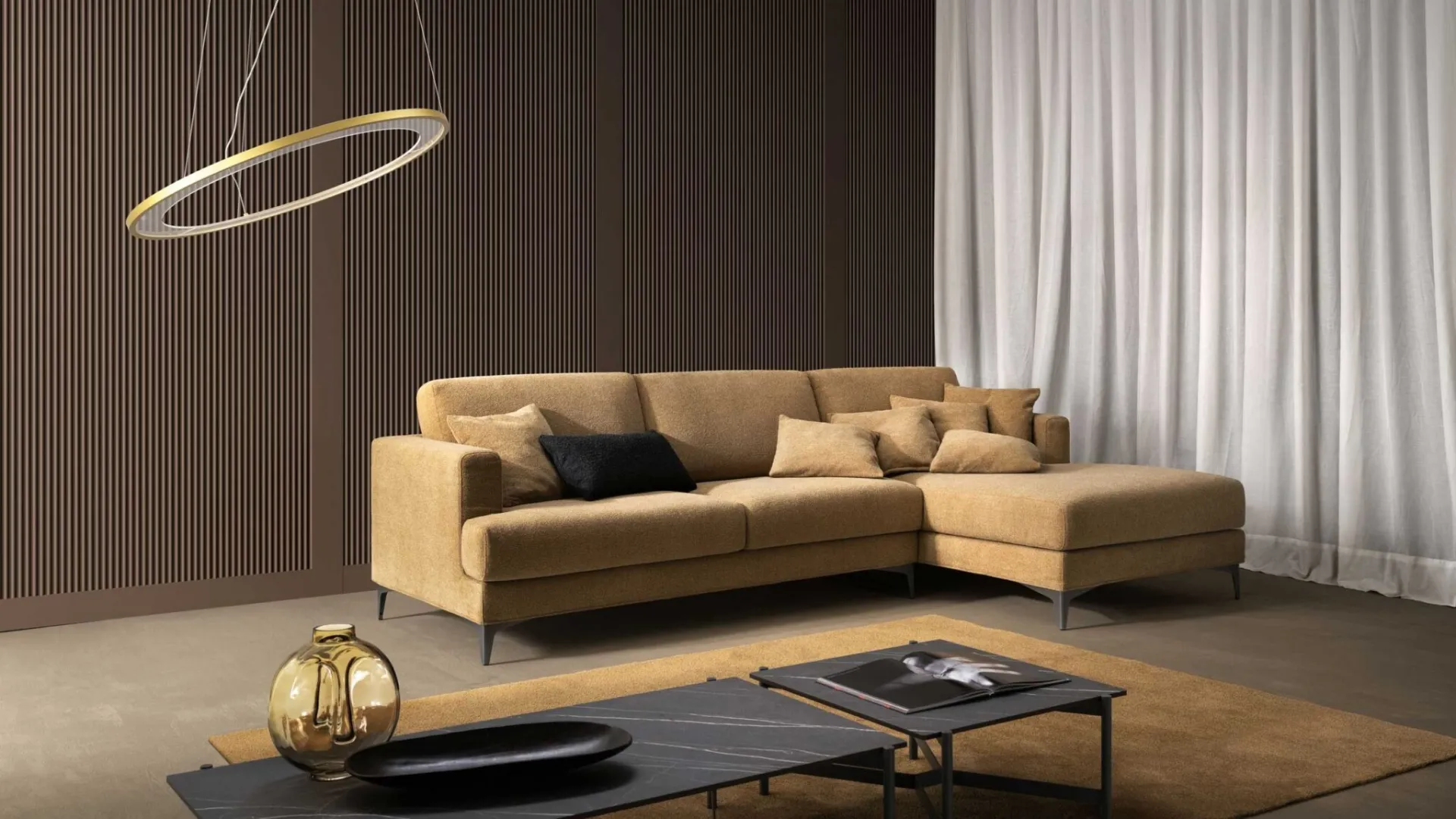 The Samoa catalog offers different ideas for furnishing the environment with functionality and aesthetic content, focusing on your comfort. Our lounges are designed to be combined with various accessories, such as tables, lamps, and floor lamps, or in combination with additional fabric sofas. The brand's line of sofas offers unique ideas for furnishing the living room with functionality, comfort, and style. If you want sofas and armchairs with a peninsula like the model in the photograph, characterized by volumes that invite you to spend your moments of relaxation.