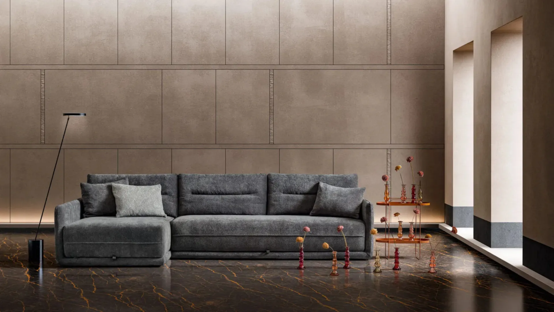 If you are looking for a fabric composition, discover a rich catalog of sectional sofas with great design. Clock convertible sofa bed by Samoa: all the products of the brand are synonymous with durability, quality of finishes and upholstery, bold lines and a unique style. If you want one of the models of design living rooms with fabric sofas, visiting us will make you discover the most beautiful proposals signed by Samoa. A rich range of design upholstery awaits you in our showroom. In our store, you can find a wide range of sectional sofas, some of the ideal pieces of furniture to design your living room with style and practicality.