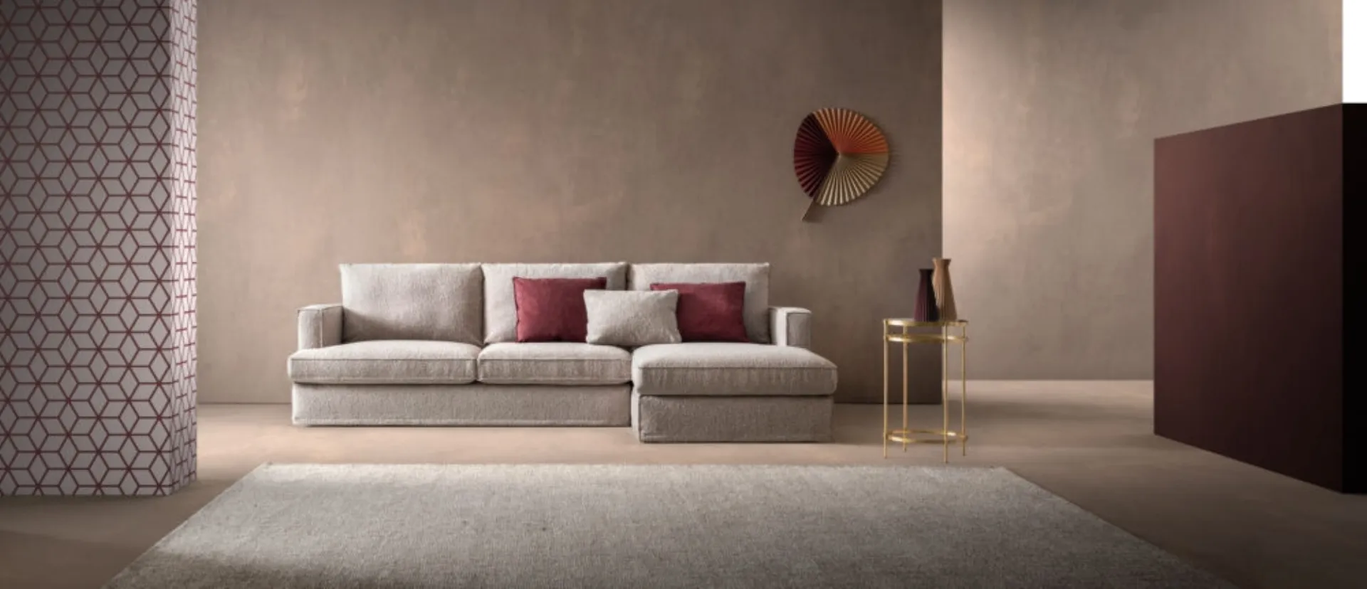 Glammy sofa with peninsula by Samoa: let yourself be tantalized by our proposals of modern upholstered furniture that can guarantee comfort, practicality, and design in your living room. Sofas represent a truly essential element of the living room, to be carefully organized by placing sofas, armchairs, and ottomans. Samoa, a leader in the production of sofas, has created an elegant and sophisticated fabric covering for the model in the photograph. The living room is the protagonist of every home's living room, upholstered furniture are furnishing modules around which to spend moments of relaxation and socializing.