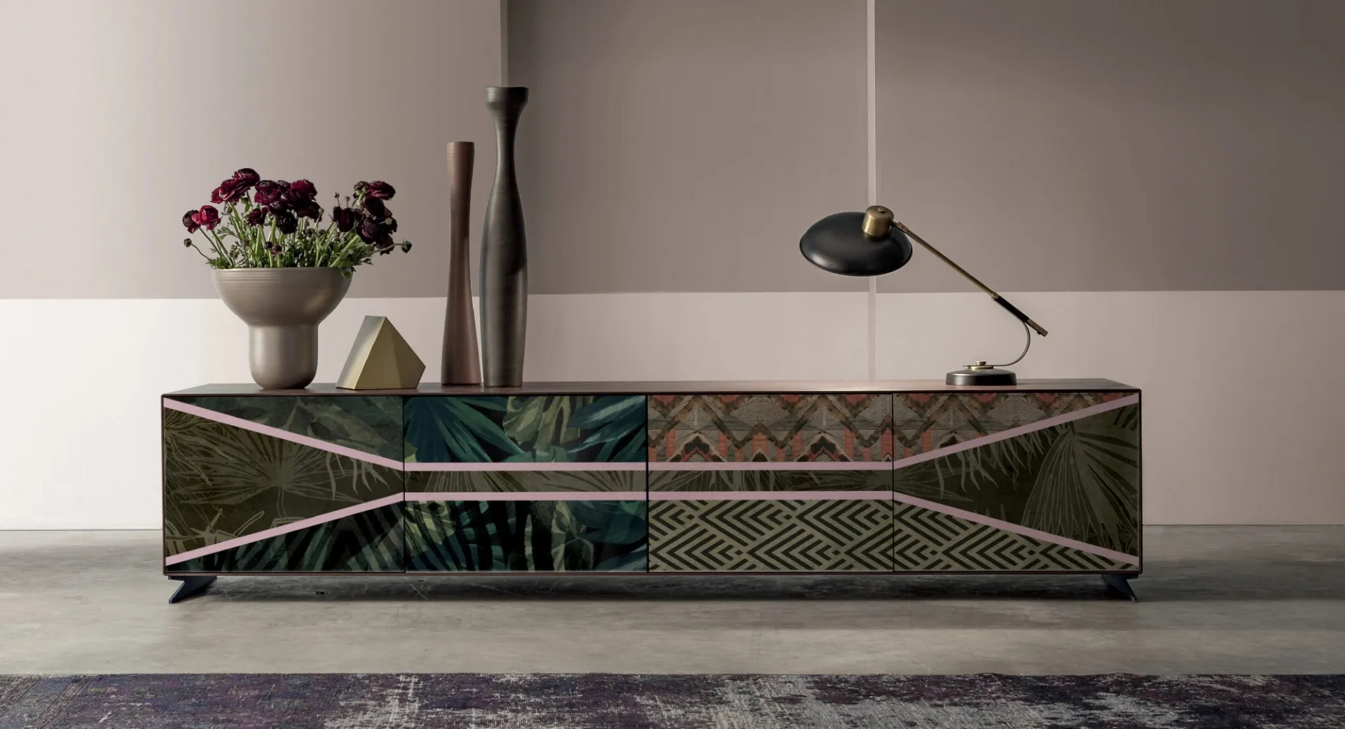 Thanks to the Madia Jungle 100 by Devina Nais, you can embellish your interiors by enhancing every corner of the living room and ensuring a unique style. If you want to enhance your living room with a new sideboard, our website offers a wide range of wooden home furniture from the best brands. Contact us for more information on furniture and accessories for the living room: a wide selection of modern dressers awaits you! With the living room furniture available here, you can create a unique atmosphere.