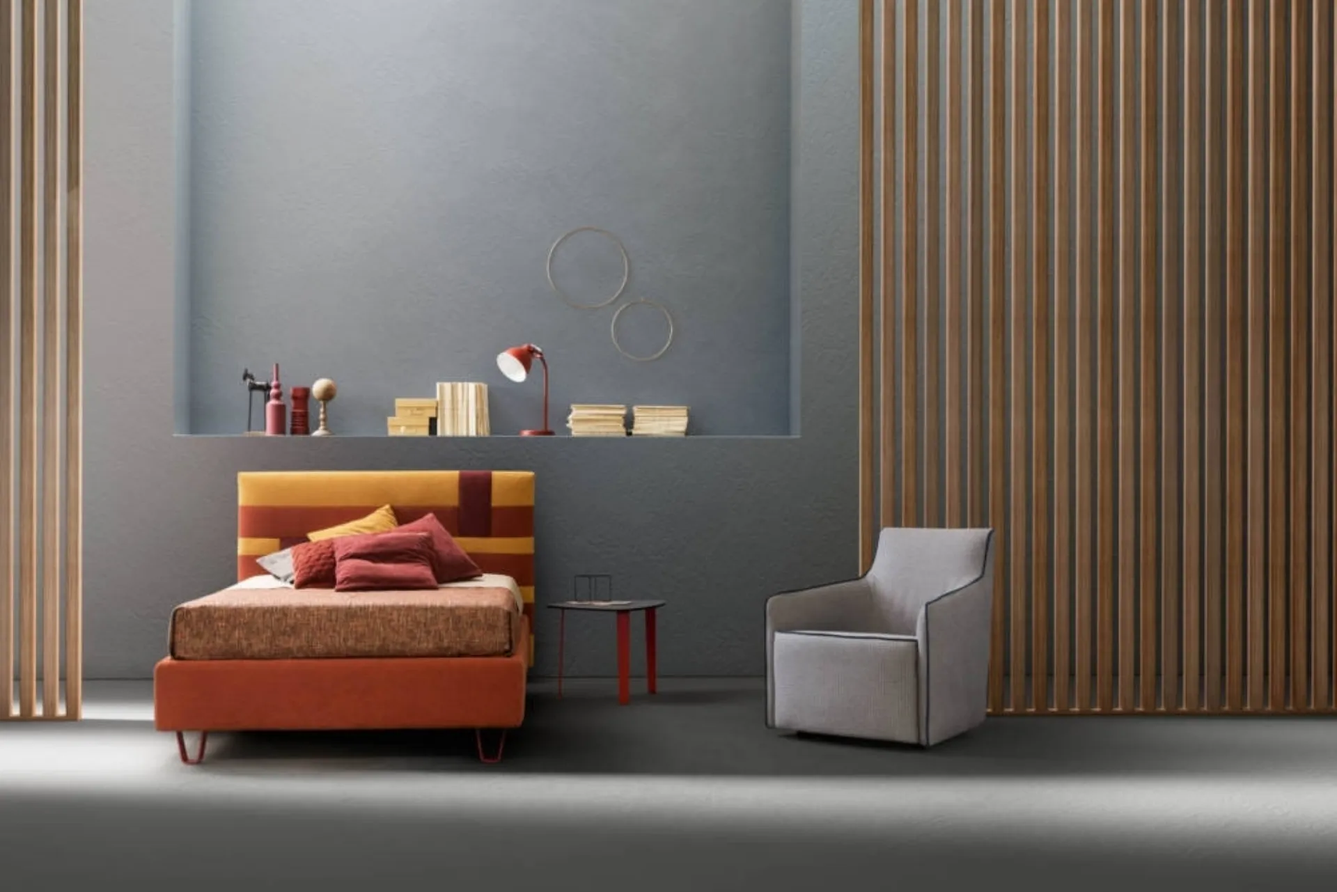 The single upholstered beds for the little ones' room available in our store solve any space and functionality problem, ensuring at the same time a unique style. Get information on the Bside Net Upholstered Bed in the image: it is the solution to create an ideal environment for children, beautiful and well-organized, perfect for your kids. A wide range of modern fabric beds is waiting for you: the Bside brand offers different versions of beds, always meeting the needs of children.