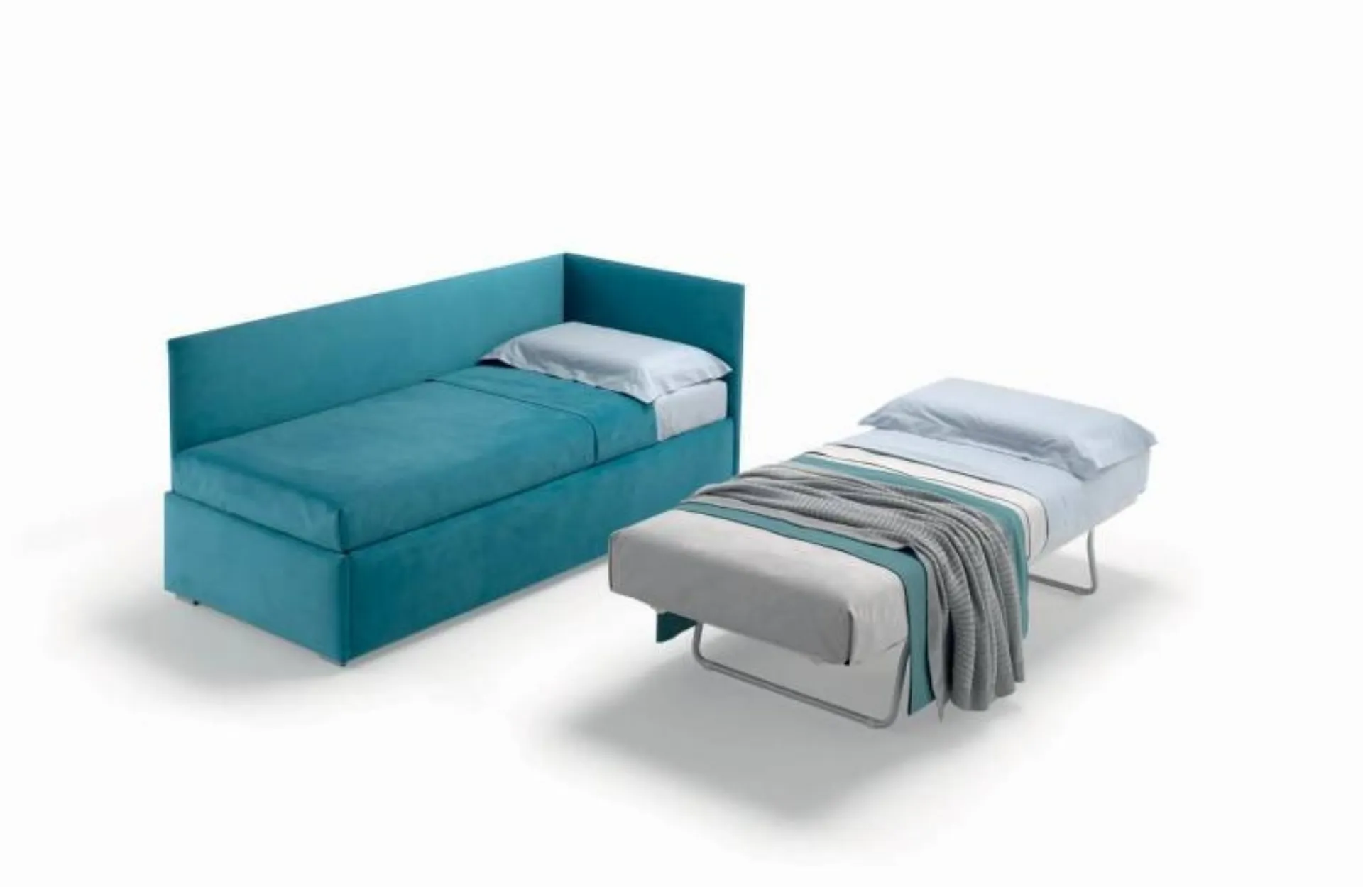 A solution that complies with the essential safety guidelines for decorating the kingdom of the young. The children's bedroom must include everything necessary to ensure a comfortable environment, where modern beds like this one coexist. Learn more about the fabric model in the photograph: contact us for any specific information by filling out the form below.