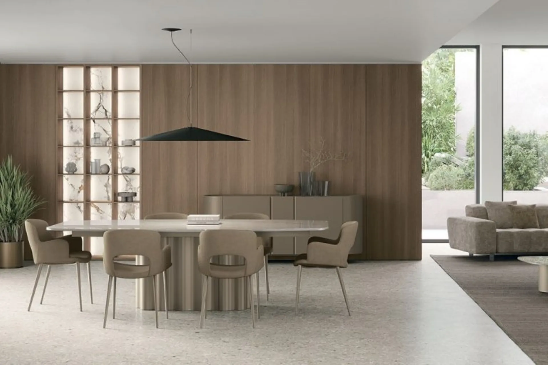 In our website dedicated to home furnishing, you will find everything you need for your living room or kitchen. Whether you want to change the designer furniture you have at home or buy them from scratch, here you can see in person the most original solutions on the market. When purchasing the perfect table for you, it is essential to consider dimensions, lines, materials, and style, to best organize the space with an excellent aesthetic result. In the store, you will find a rich catalog of fixed tables from the best manufacturers, including the dining model shown in the photo.