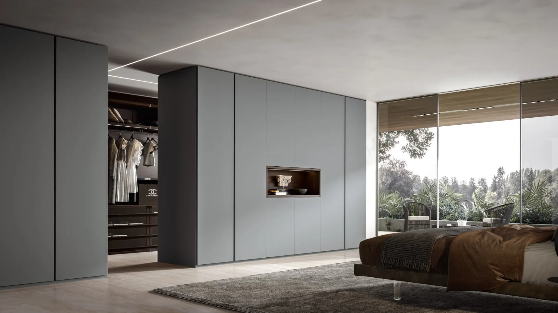 To perfectly set up a beautiful and high-quality room, opt for the most beautiful solutions from the best brands, beds, wardrobes and bedside tables of high quality. Wall cabinets with hinged doors are essential components in the bedroom, to make it tastefully furnished, functional and complete with everything. Wardrobe with hinged doors Smooth lacquered Smoke by Veneran: fill out the form to receive information of all kinds and advice on setting up the bedroom you have always wanted.