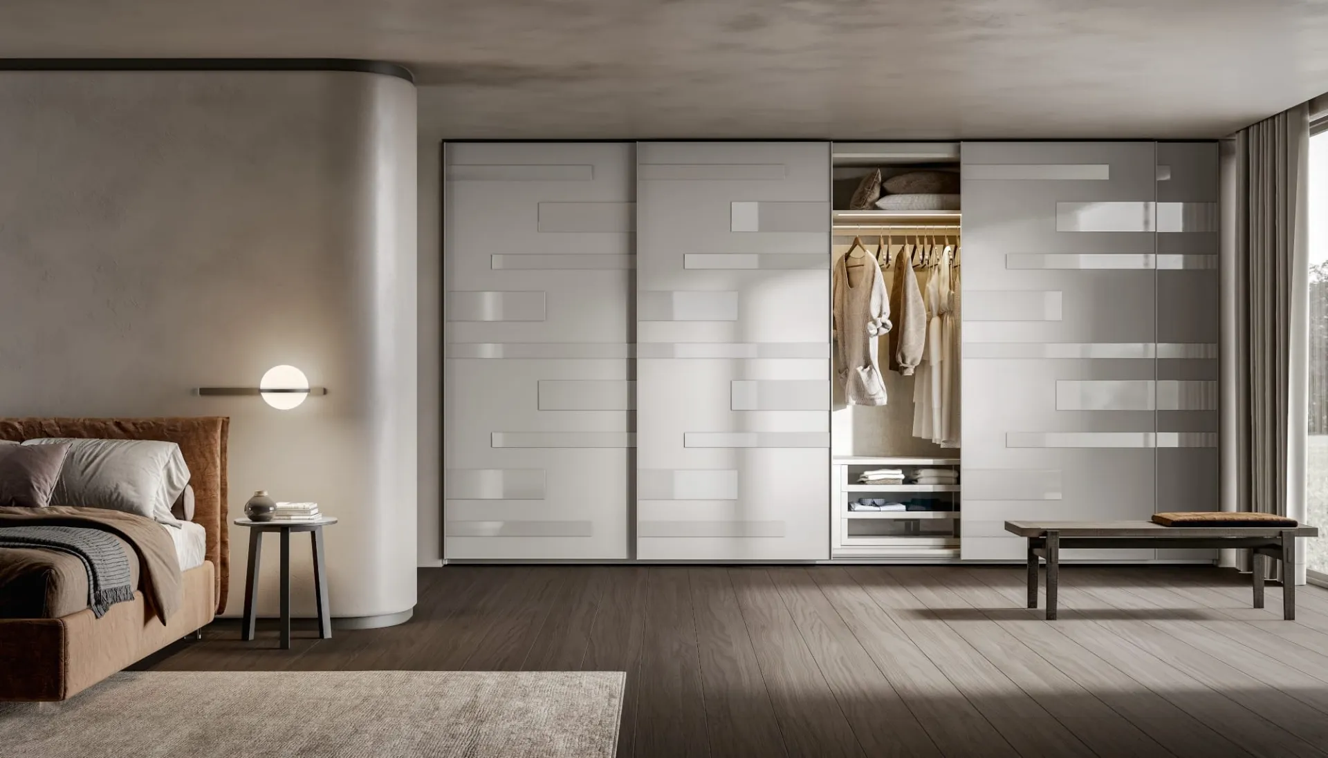 If you want to create a beautiful and functional room, fill out the form or come to us to get information, ideas, and inspiration in the field of Home Furnishings. Durability and comfort are the aspects that, together with a good aesthetic performance, characterize all the wall closets by the Veneran brand. Segmenta Sliding Door Wardrobe by Veneran: if you are looking for professional designers for quotes and projects, realize with us the home you have always wanted. Visiting our store means seeing in person many products from the well-known and renowned brand, always of great design. Segmenta Sliding Door Wardrobe by Veneran in matte lacquer finish: in a rich catalog of furniture and accessories, this model will allow you to complete your bedroom as you had dreamed.