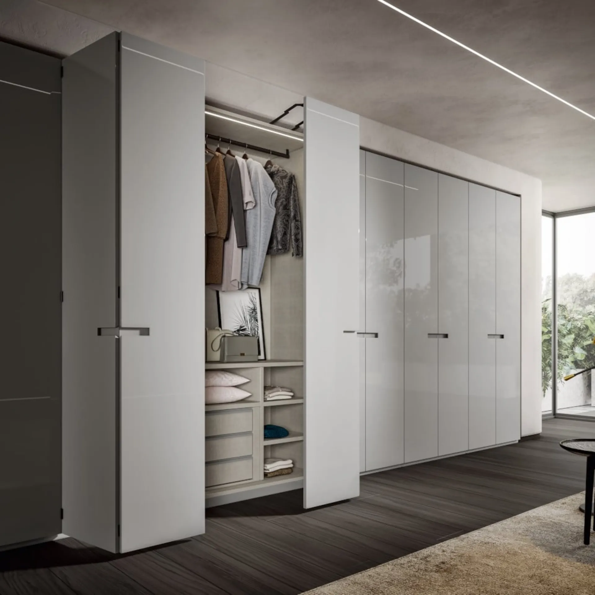 Wall closets with folding doors are essential elements in the bedroom, to furnish it at its best, functional and complete with everything. To set up a practical and sophisticated room perfectly, choose the most original solutions from the best brands, beds, wardrobes and bedside tables of great design. Wardrobe with folding doors Sincro in ash lacquered by Veneran: fill out the form to receive information of all kinds and tips on setting up the room you have always desired.
