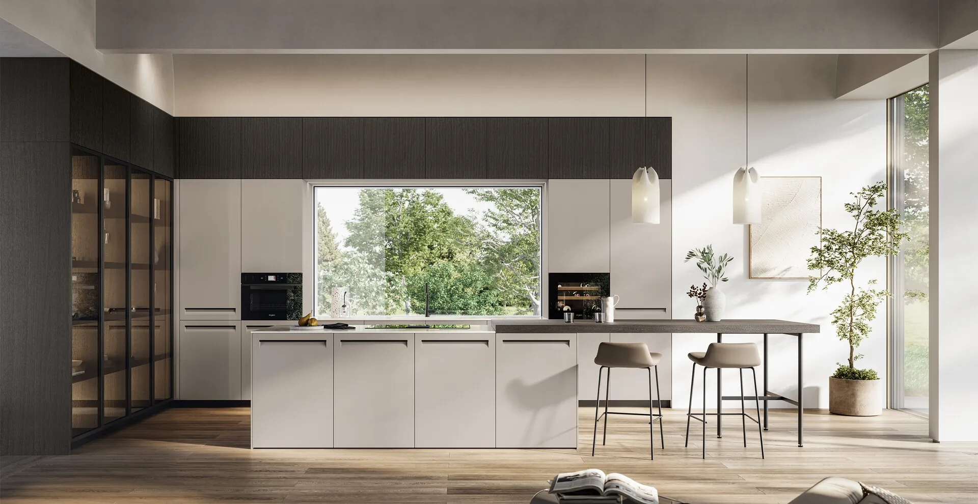 Choosing this modern kitchen with Tekna 01 island by Arredo3 in Pet means organizing spaces, enhancing them without sacrificing style. In our showroom, you will find a wide range of Arredo3 modern kitchens with high aesthetic value, in different colors and up-to-date materials and various configurations. This solution with a high aesthetic value island, signed by the well-known and renowned brand, is one of the most exclusive models and you can request it in multiple finishes. The purchase of the new kitchen will depend on the layout of the room, its style, and your space, practicality, and containment needs.