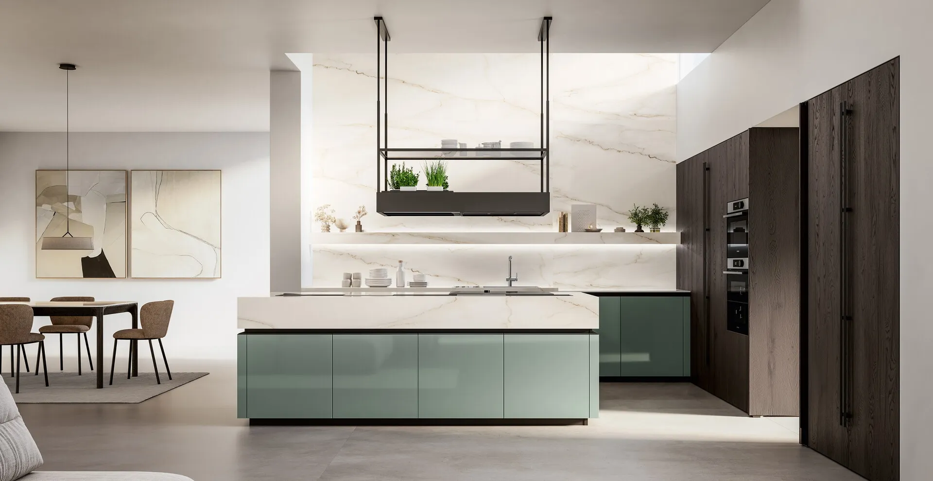 Choose the kitchen that suits you among the different island solutions available on the market: you can furnish the spaces by enhancing them. The model in glossy lacquer in the photo can be declined in multiple arrangements, colors, and finishes of great decorative value to allow you to interpret the environment with rationality, ensuring you the functionality and storage capacity you need. Purchasing one of the Modern Kitchens from the Arredo3 brand ensures extensive customization and maximum security: discover more about the Modern Kitchen with island Time 04 by Arredo3.